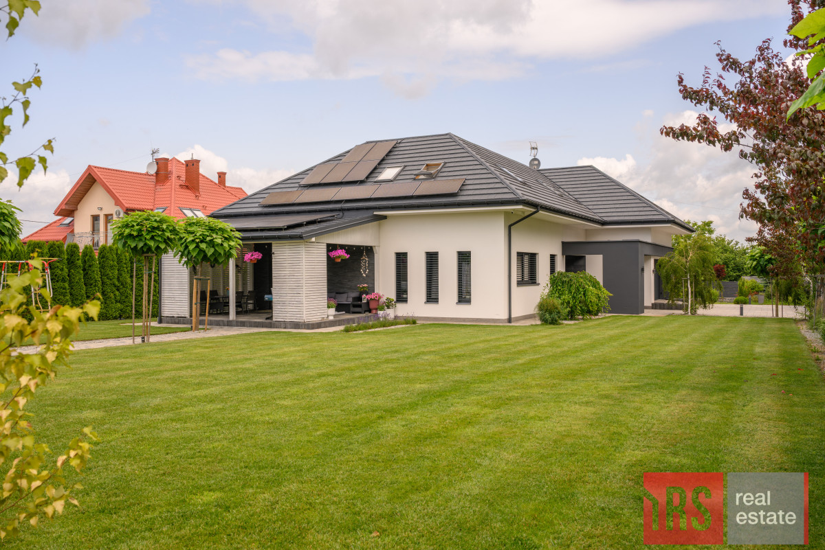 Nowoczesna i w pełni wyposażona rezydencja w miejscowości Górzno k. Garwolina, łącząca wysoką jakość wykończenia z przemyślanymi rozwiązaniami technologicznymi. Nieruchomość oferuje przestrzeń idealną zarówno dla rodzin poszukujących komfortu, jak i osób prowadzących działalność z domu. | Dom 217,25 m² | Działka 1643 m² | 4 sypialnie | gabinet/biuro | urządzony i zadbany ogród | Instalacja PV 6kWp | 4 miejsca parkingowe | szybki dojazd do S17 | Jacuzzi | gotowa do wprowadzenia