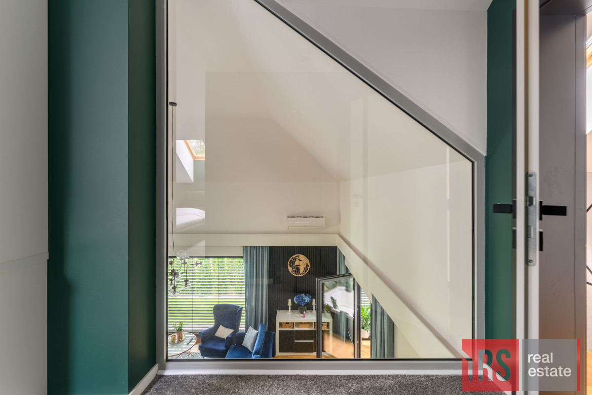 - Główna sypialnia z garderobą i przeszkloną antresolą