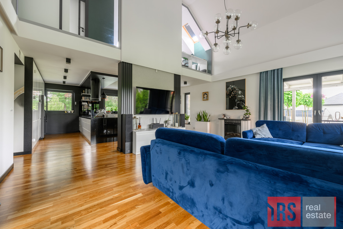 - Przestronny salon z wysoką antresolą i wyjściem na taras