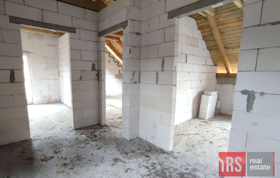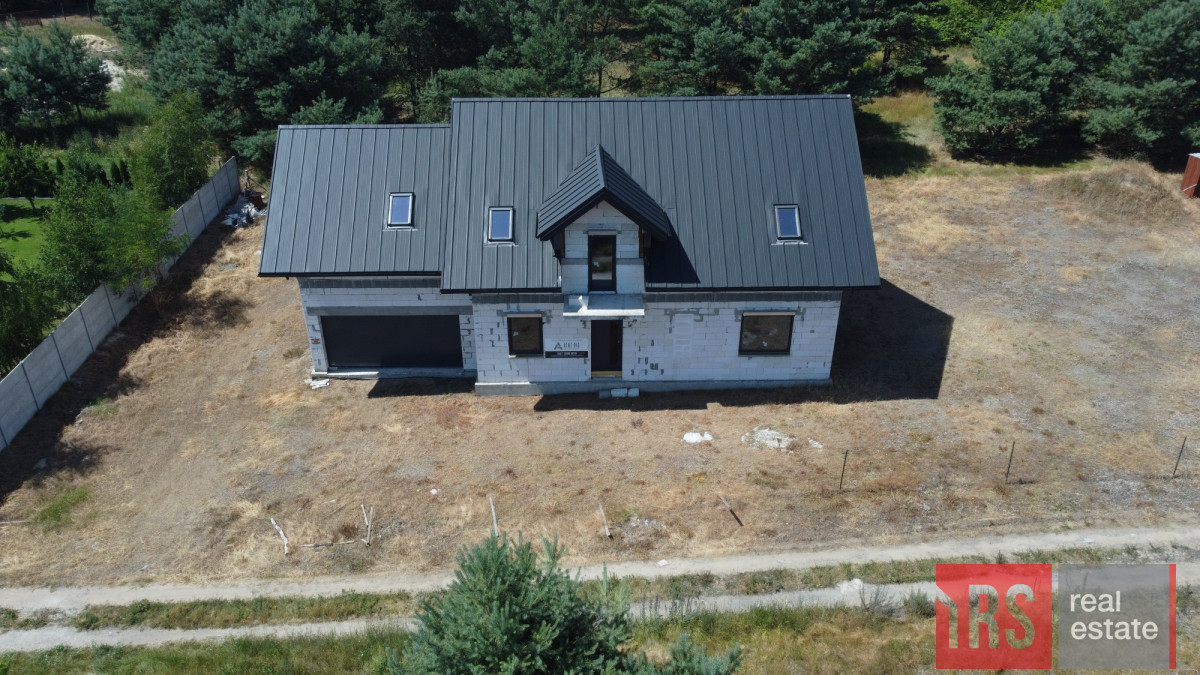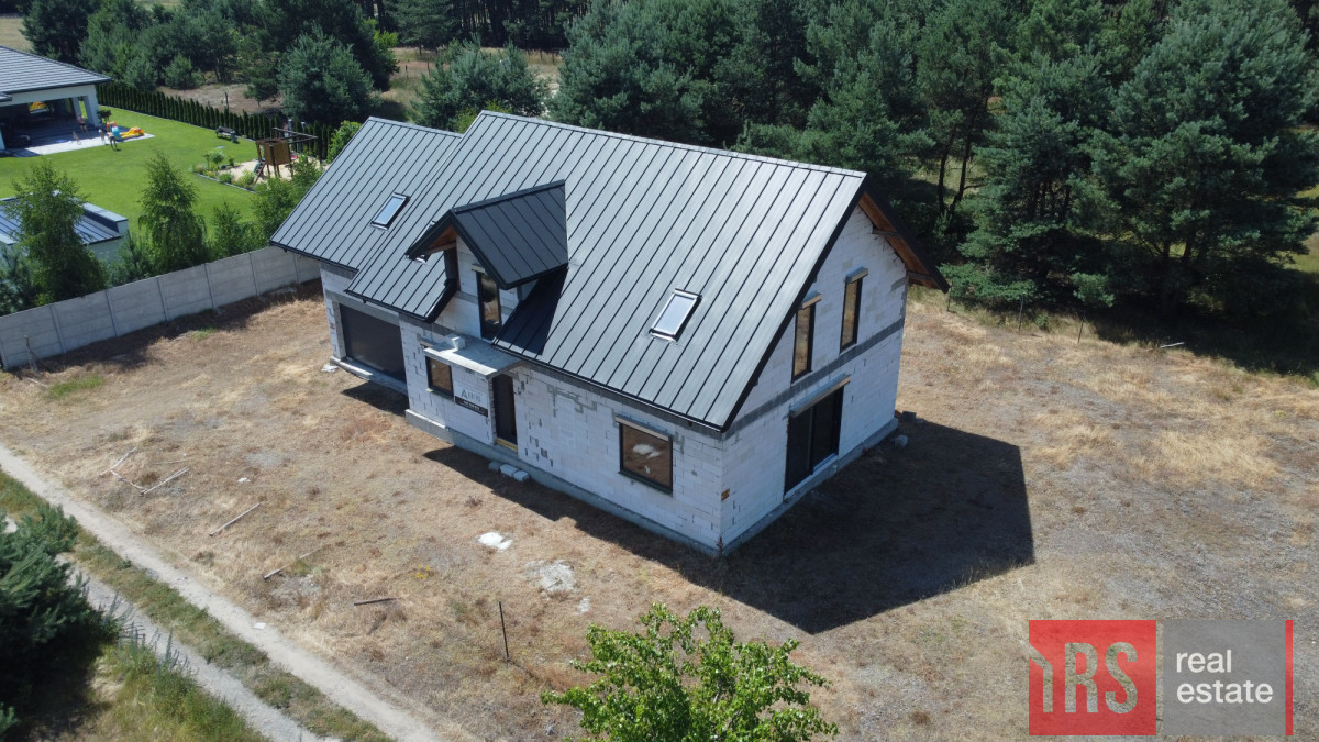 Na działce znajduje się dom w budowie w stanie surowym zamkniętym - przemyślany projekt z czterema przestronnymi sypialniami i dużym salonem dla rodziny, zintegrowany z dwustanowiskowym garażem. To idealna propozycja, by dokończyć wymarzony dom według własnych potrzeb i gustu.