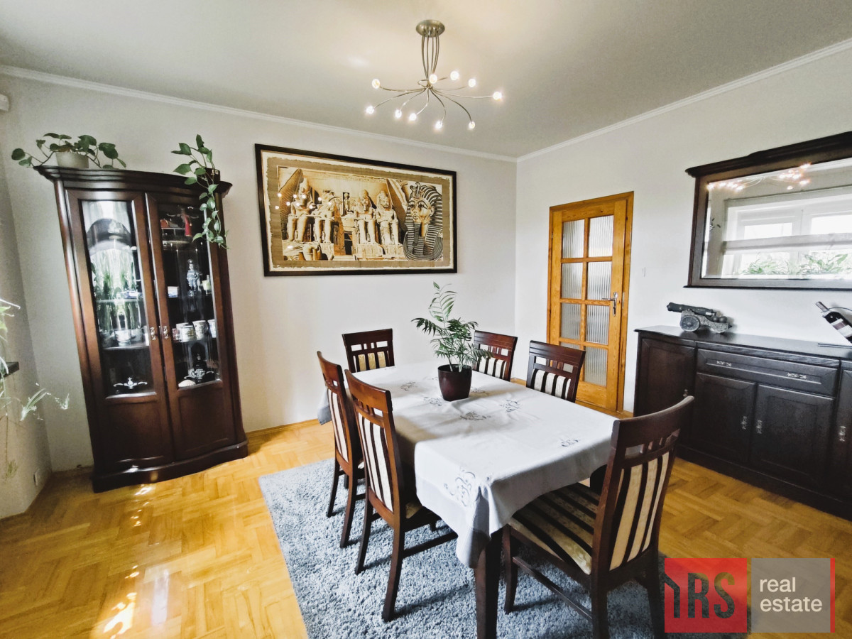 Parter: Przestronny salon z kominkiem połączony z jadalnią (wysokiej jakości parkiet), nowoczesna kuchnia z porządnymi meblami i praktyczną spiżarnią, nowoczesna łazienka wyremontowana w 2023 r.
