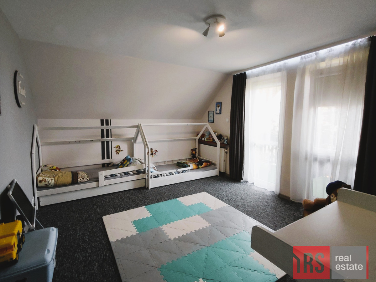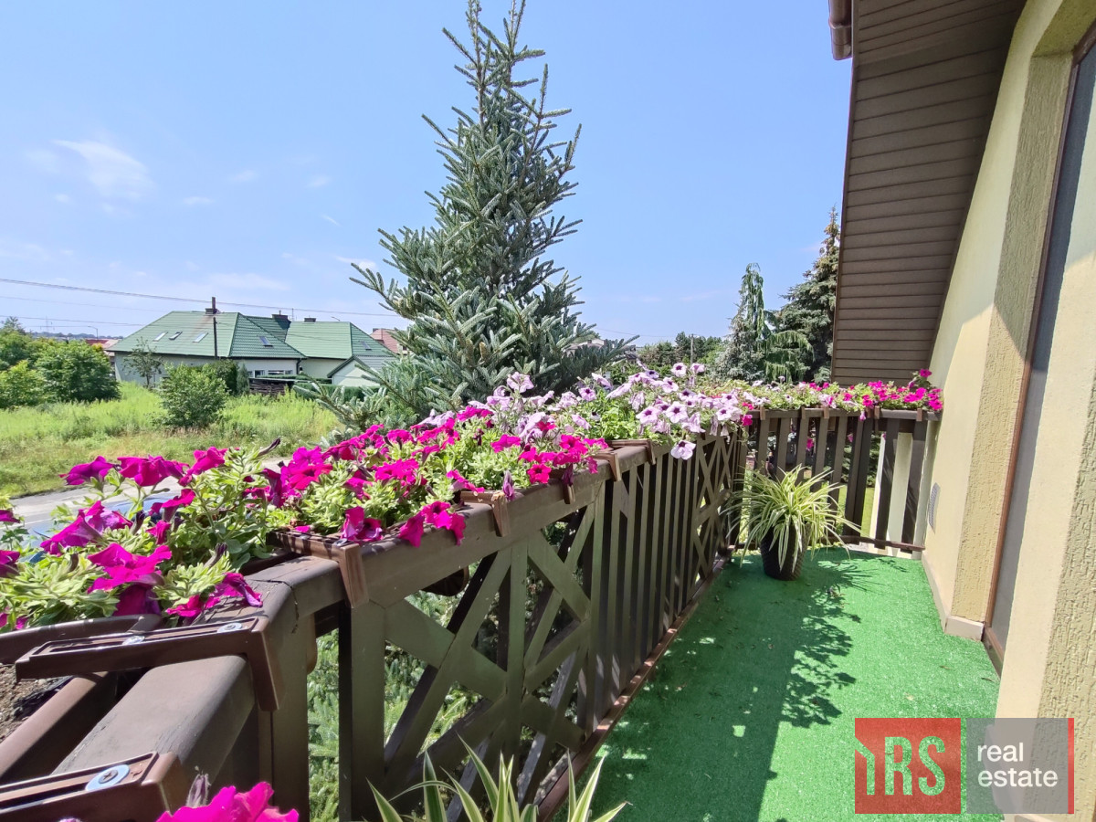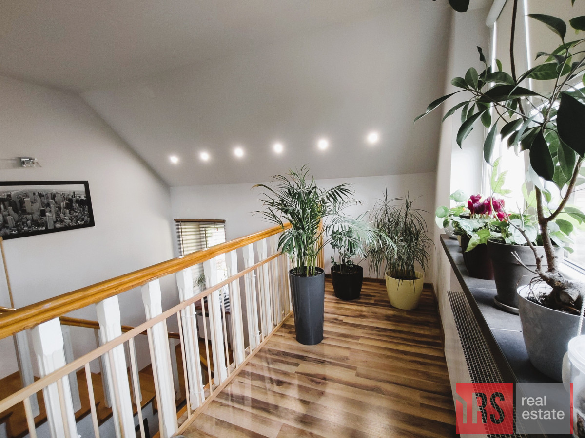 Piętro: Trzy ustawne sypialnie, każda z wyjściem na balkon, duża łazienka z wanną, loggia