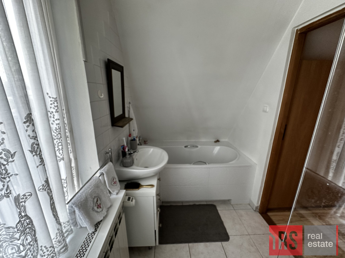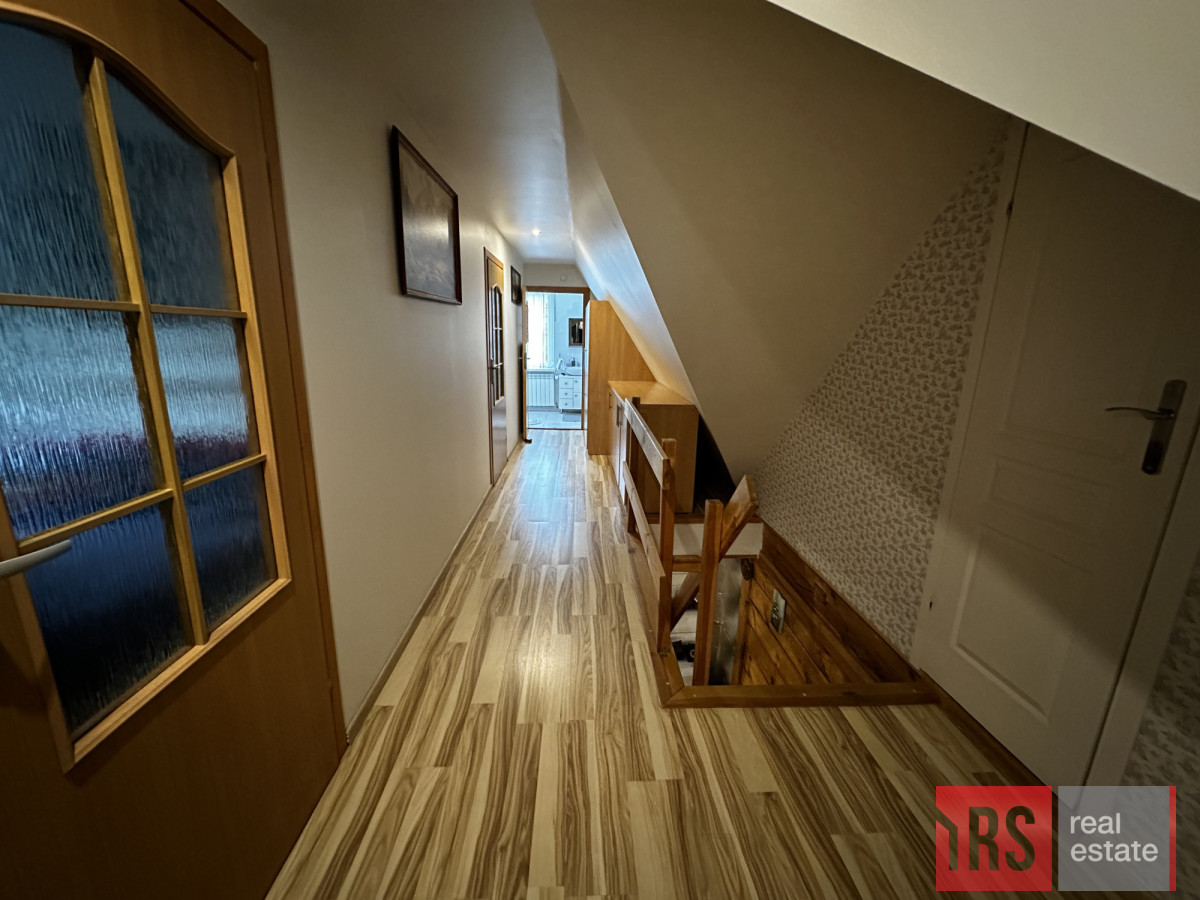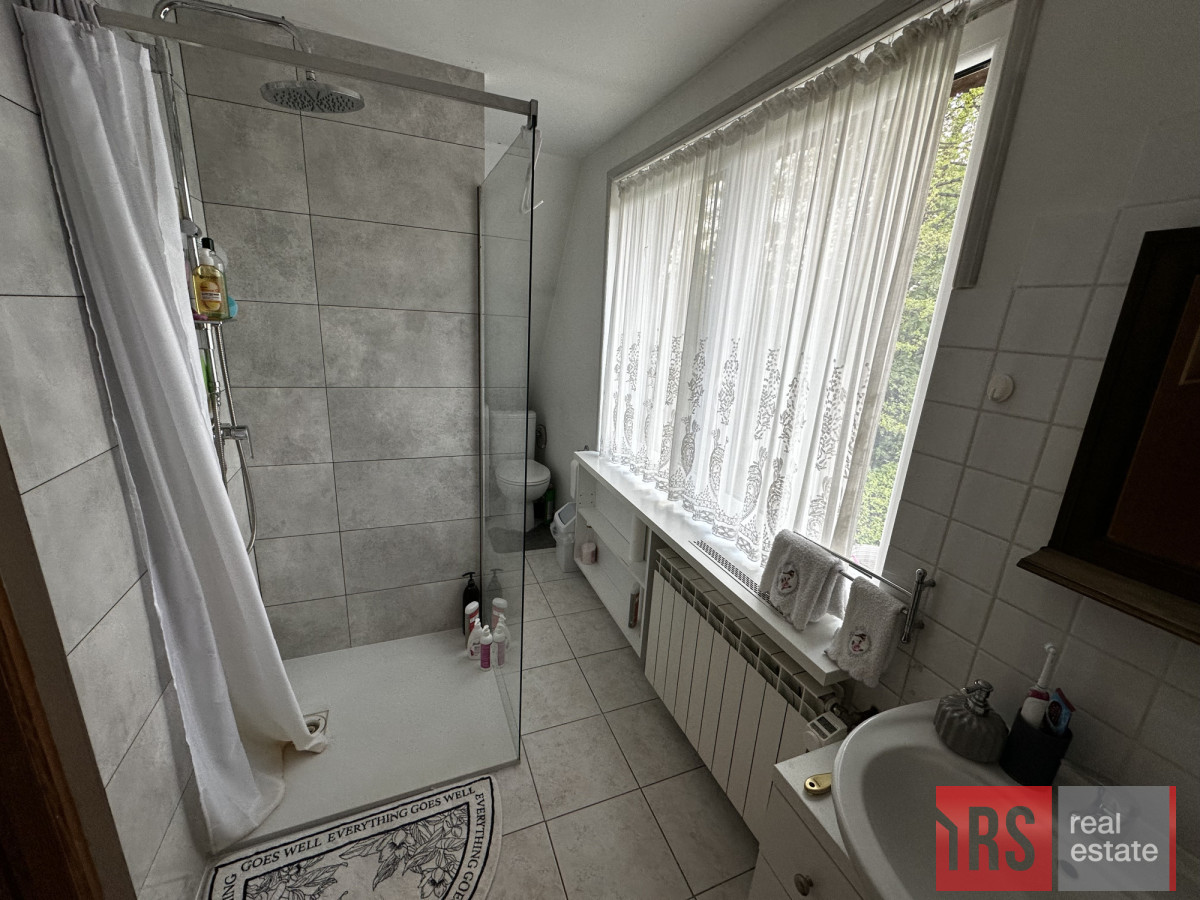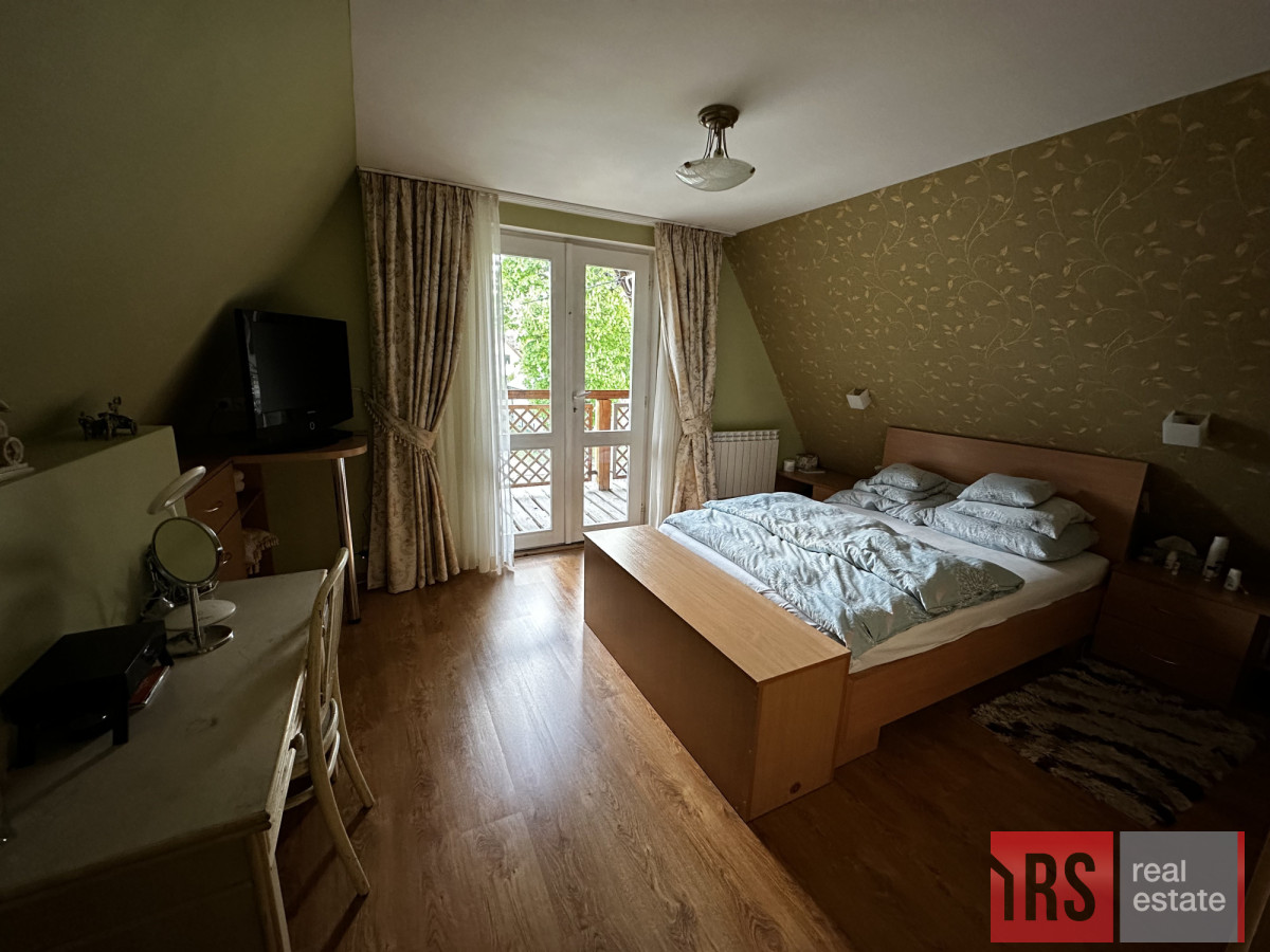 Na piętrze znajdują się 3 wygodne sypialnie, osobna garderoba oraz łazienka z prysznicem, wanną oraz widokiem na zieleń.