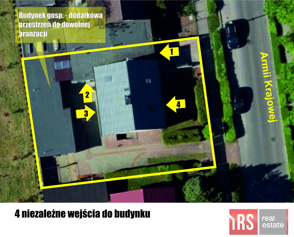 - Świetne miejsce do pracy i życia - osobne wejście z pomieszczeniem mogącym pełnić funkcję poczekalni oraz osobnym WC otwiera szerokie możliwości prowadzenia działalności gospodarczej.