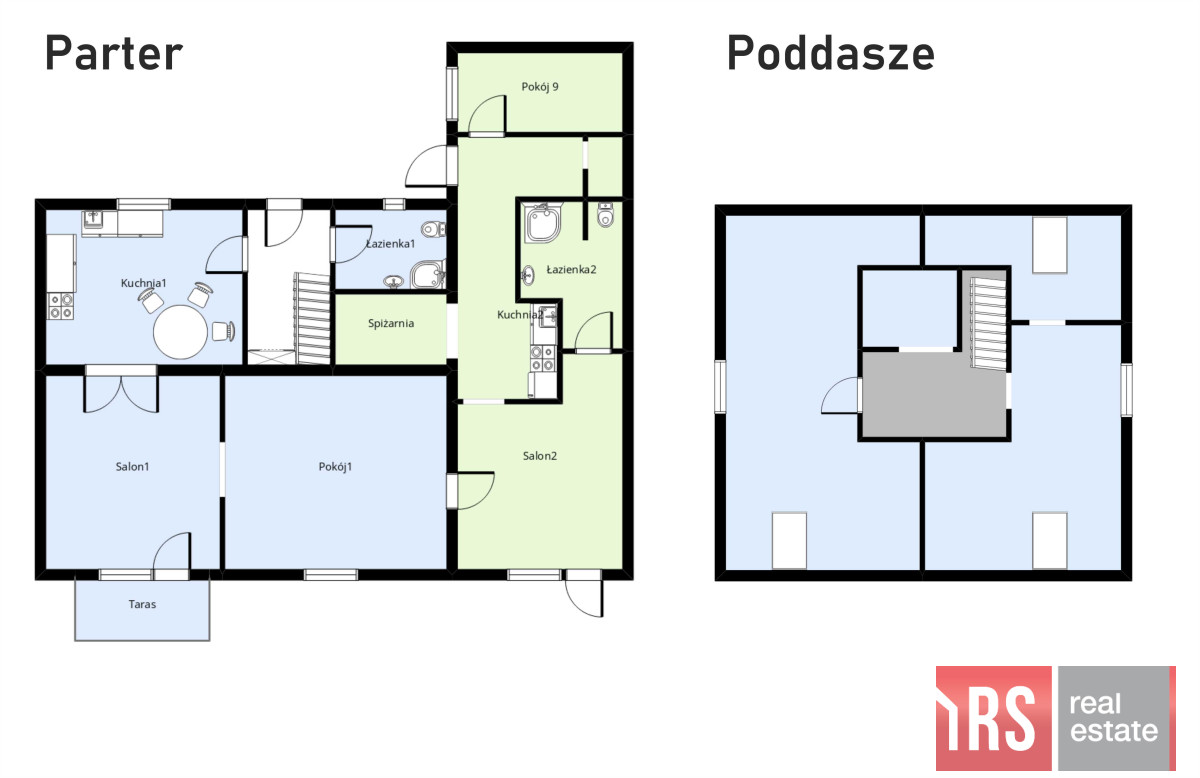 - Idealny do podziału - możliwość stworzenia dwóch niezależnych mieszkań lub połączenia funkcji mieszkalnej z lokalem użytkowym, co pozwala czerpać zyski z wynajmu.