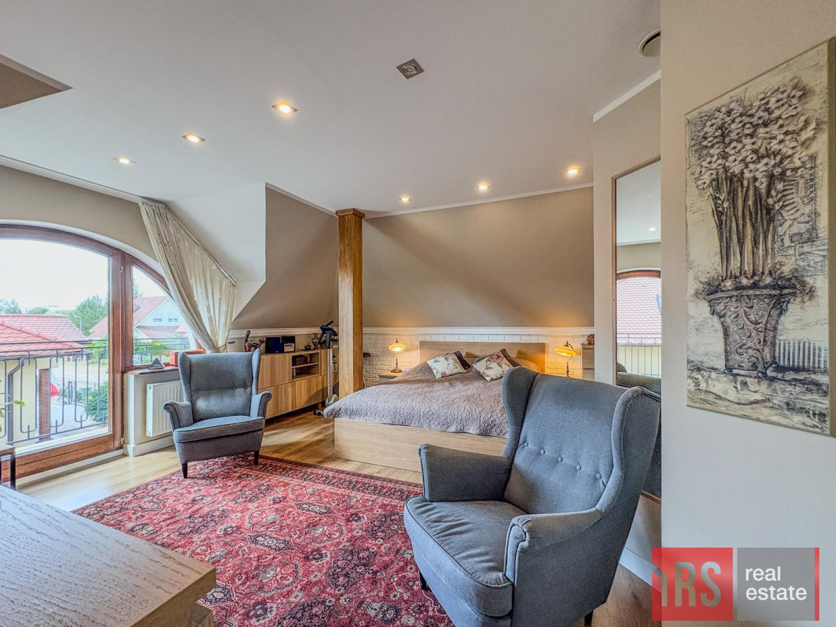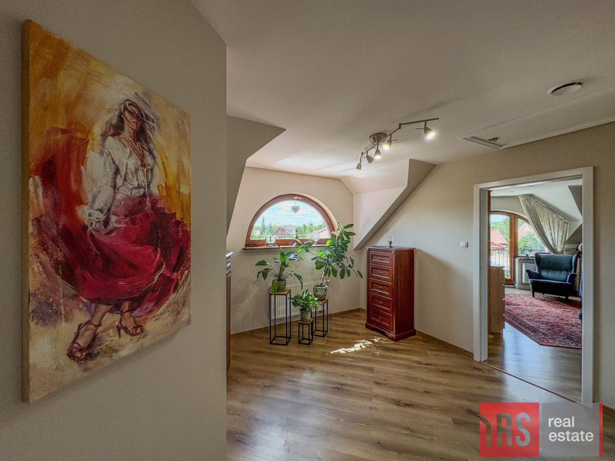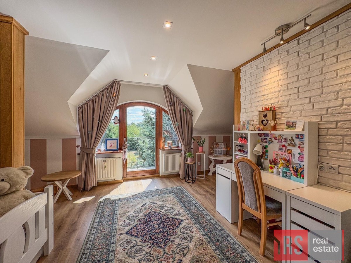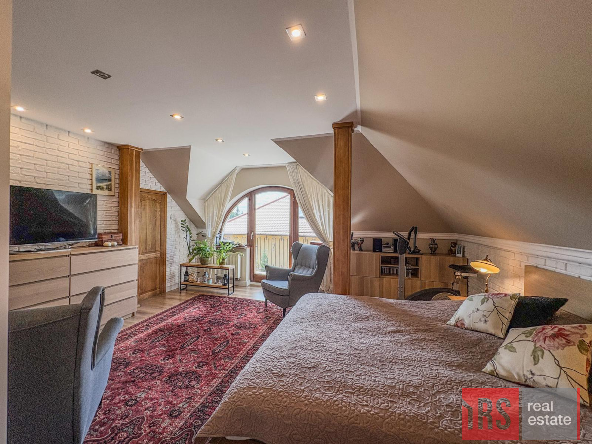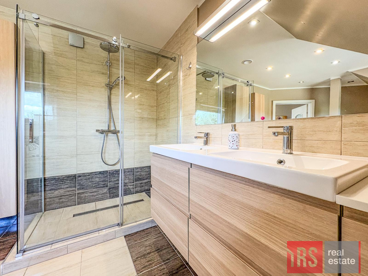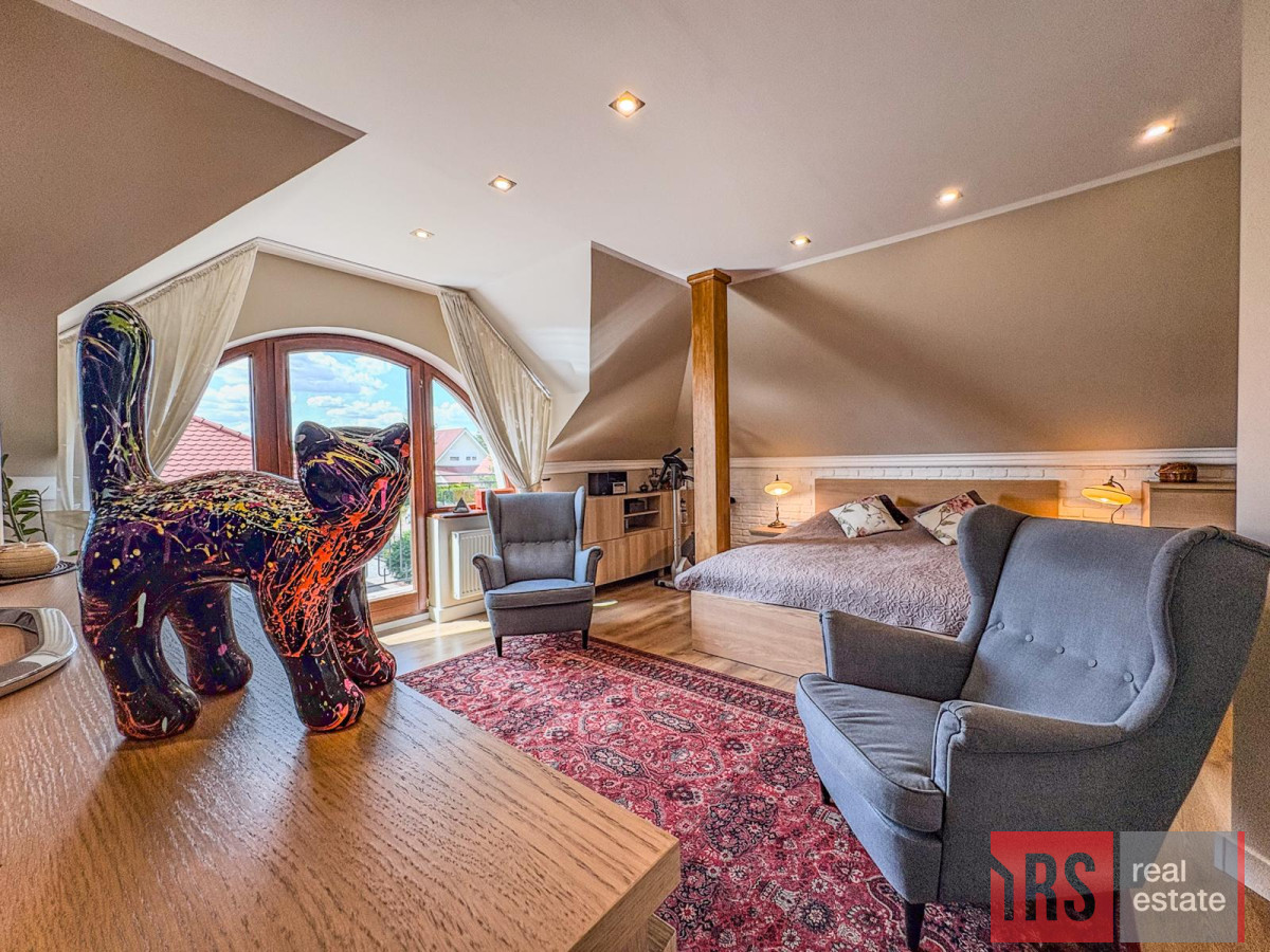 - pokój kąpielowy na piętrze (duża wanna, duża kabina prysznicowa, umywalka dwustanowiskowa)