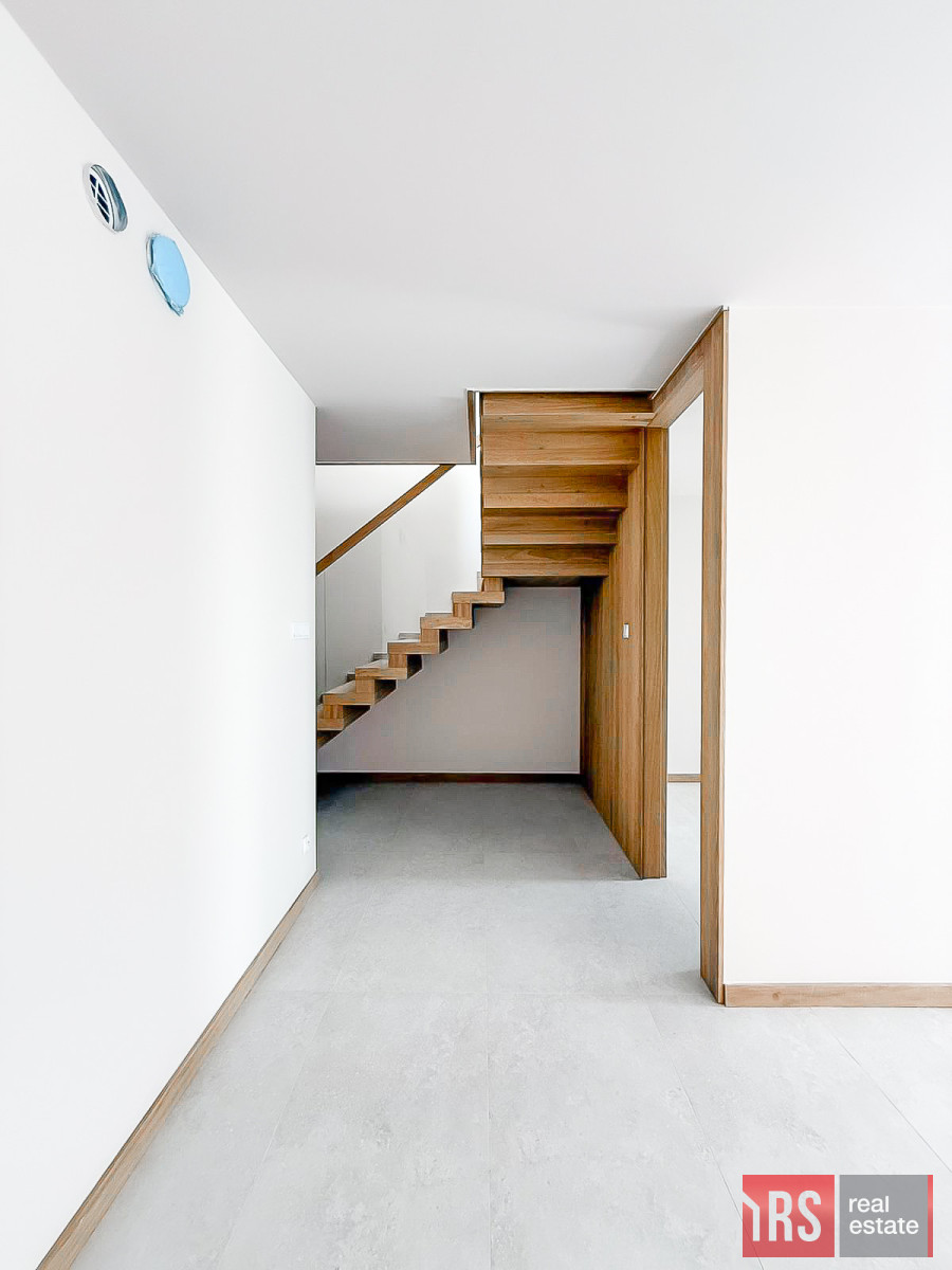 Mieszkanie usytuowane jest na trzecim piętrze nowoczesnego apartamentowca, a jego układ pozwala na elastyczne zagospodarowanie wnętrz. Na pierwszym poziomie znajdują się przestronne pomieszczenia, które można zaaranżować według własnych potrzeb. Antresola natomiast może pełnić funkcję domowego biura, strefy relaksu lub dodatkowej sypialni.