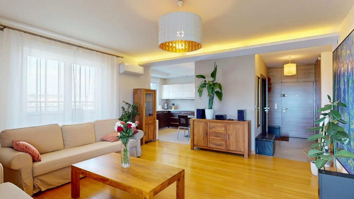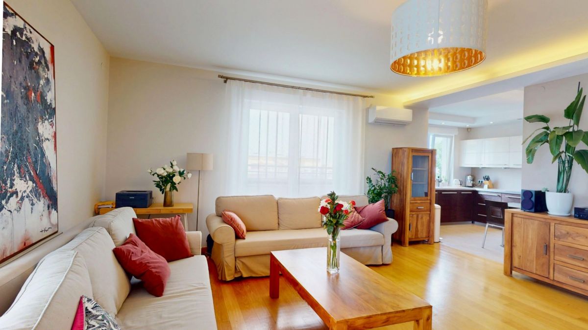 Przedstawiamy unikalną ofertę apartamentu na warszawskim Bemowie. To wyjątkowa okazja, gdyż oprócz przestronnego tarasu w kształcie litery U z widokiem na panoramę Warszawy w tym na PKiN oraz warszawskie drapacze chmur, to mieszkanie znajduje się w budynku, który dzięki swojemu usytuowaniu, jako jeden z nielicznych unika hałasu z trasy S8, która znajduje się za lasem.