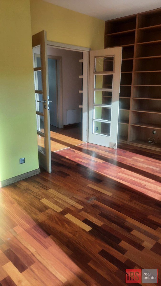 Sam apartament jest wykończony z wykorzystaniem materiałów wyższej jakości - był urządzany dla mieszkającej tam rodziny, z dbałością o jakość i komfort. Wszędzie na podłogach parkiety drewniane (salon, hol, sypialnie) bądź gres (łazienki, kuchnia) ; okna duże drewniane, wysokość pomieszczeń ponadstandardowa. Wszystko to sprawia, że mamy odczucie jasnej, przytulnej i zapraszającej do wnętrza przestrzeni.