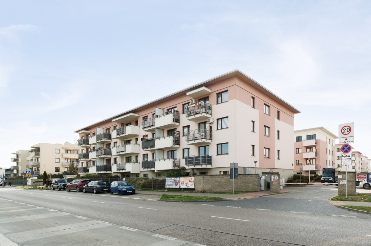 Przyszły właściciel może parkować samochód na wynajmowanym parkingu obok bloku.