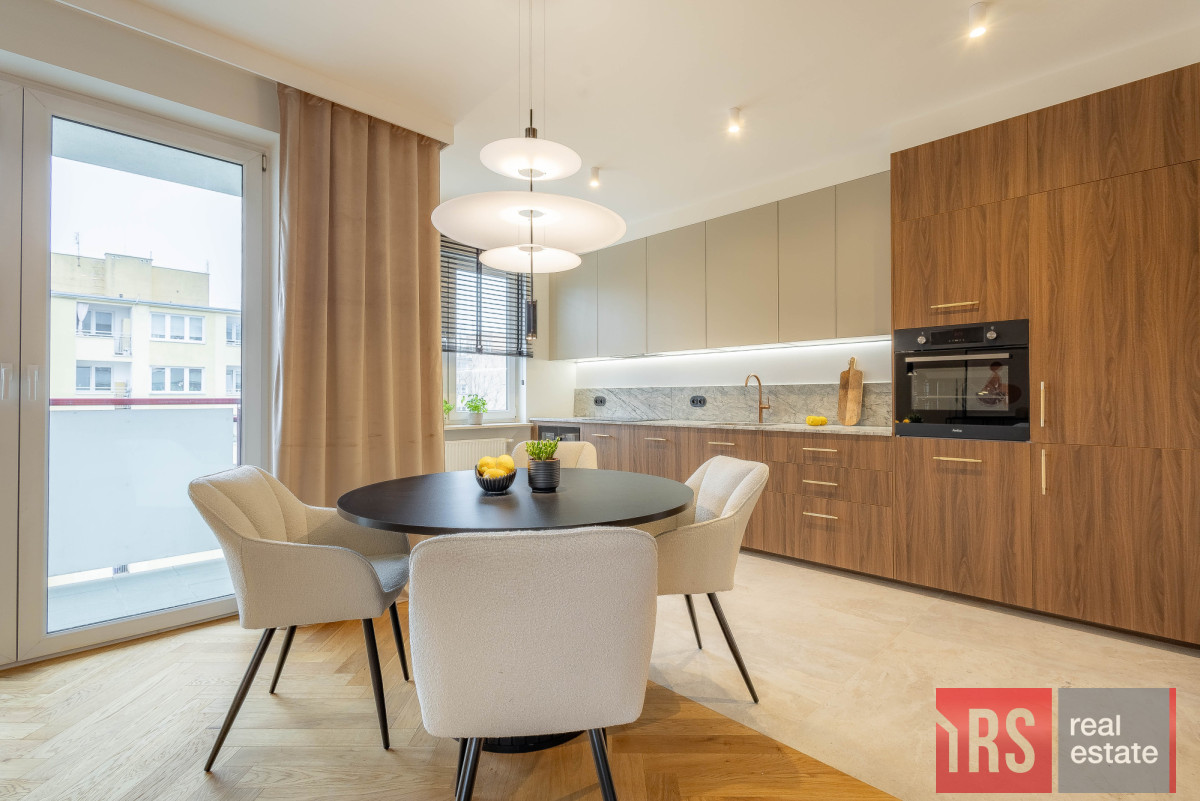 - przytulny klimatyzowany salon,z wydzieloną jadalnią, doświetlony dużymi oknami z wyjściem na kształtny balkon 6 m2