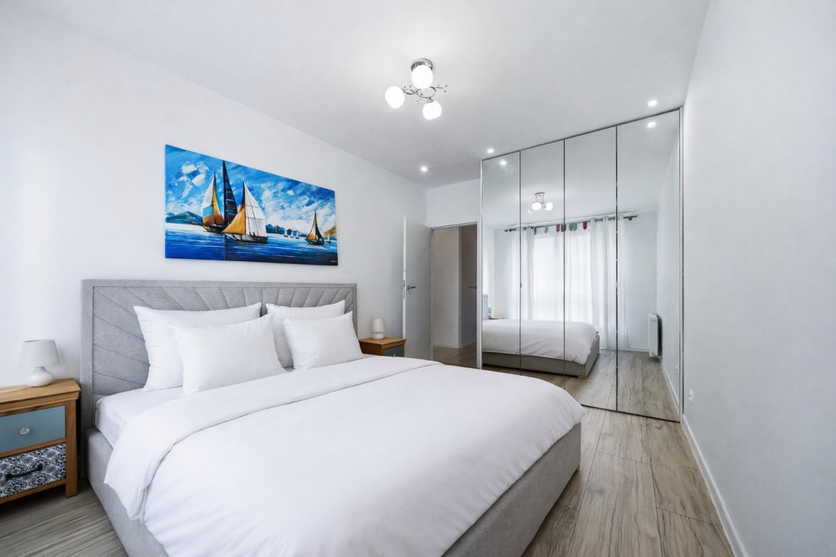 - Przestronna sypialnia z szafami w zabudowie