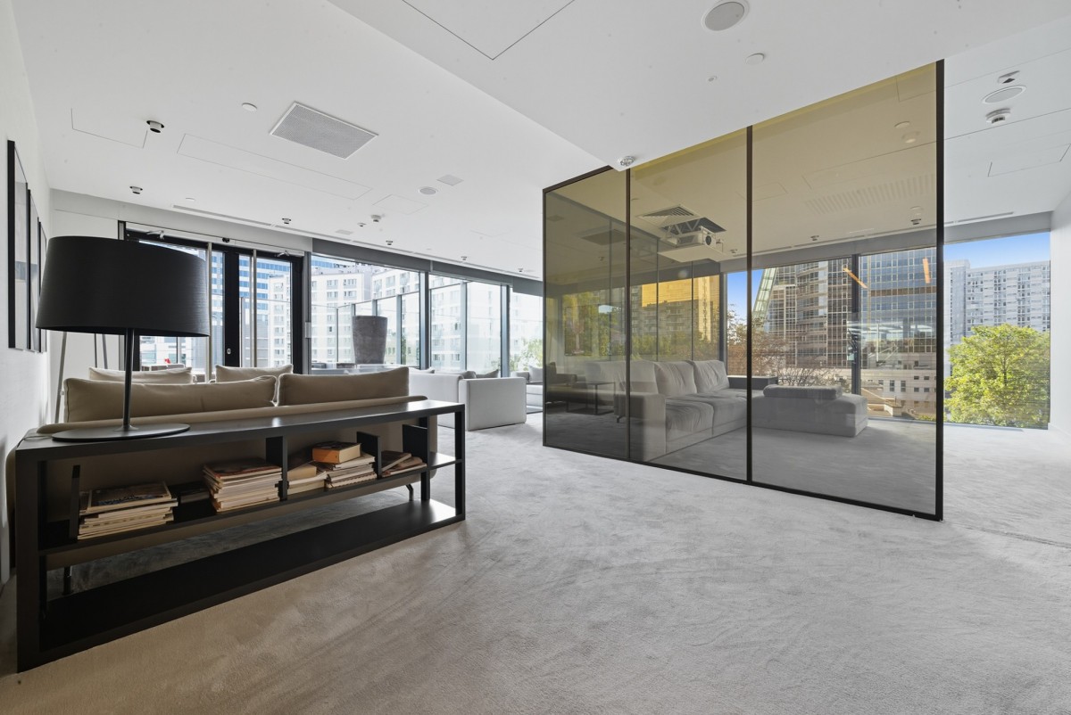 Cosmopolitan is a luxurious 44-storey apartment building designed by world-renowned architect Helmut Jahn. Residents have exclusive access to a relaxation area on the 4th floor of the building, including a fitness club with a gym, massage room, dry and wet saunas, as well as club rooms with a kitchen and meeting rooms. An additional advantage is the spacious 840 m² terrace overlooking Grzybowski Square and Emilii Plater Street. Residents also have access to underground parking and a 24-hour reception and security service, ensuring comfort and safety.