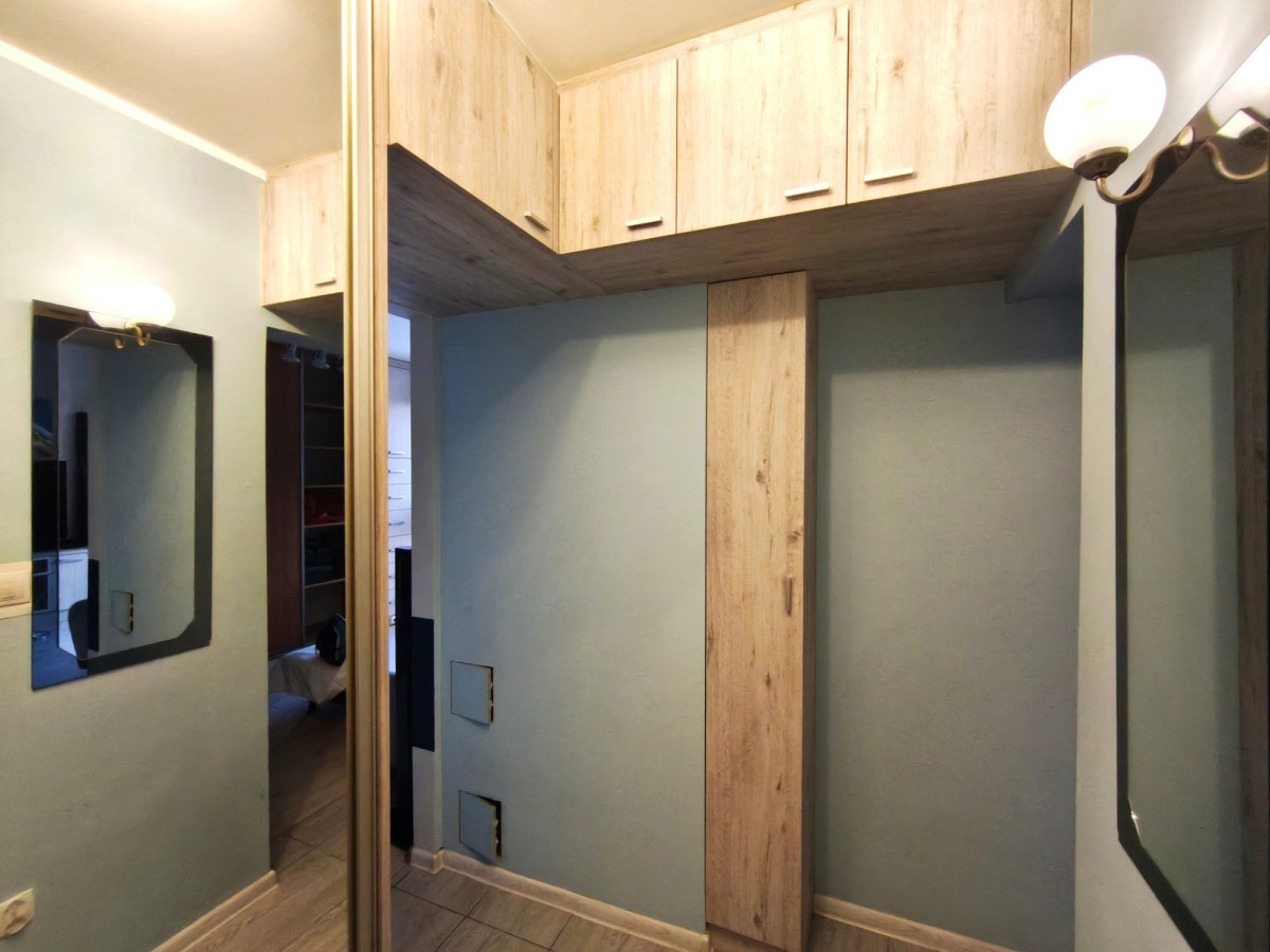 W mieszkaniu zostają w cenie: szafki kuchenne, regał w pokoju (robiony na zamówienie), zabudowa przedpokoju, szafa z lustrem typu komandor - w małym pokoju.