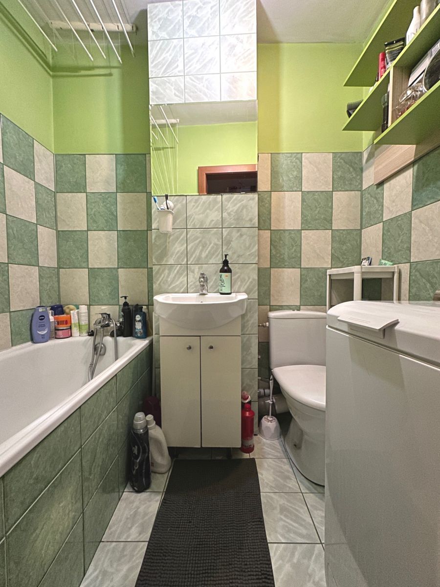 Łazienka z wanną o powierzchni 3,3m2, mieści się w niej pralka.