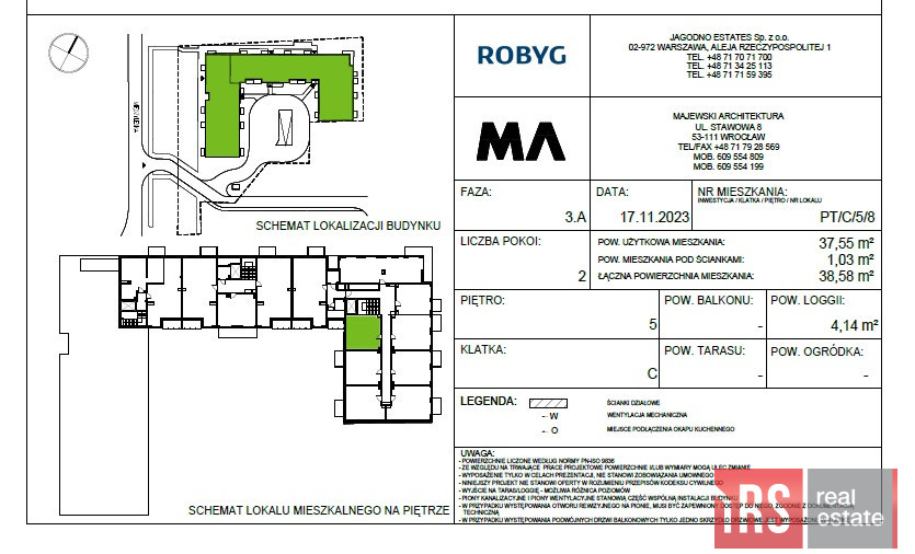 Oferujemy urokliwe mieszkanie w doskonałej lokalizacji, które idealnie wpisuje się w potrzeby zarówno singli, jak i rodzin z dziećmi. Znajduje się na pierwszym piętrze nowoczesnego bloku wybudowanego w 2025 roku, a jego powierzchnia wynosi 37,55 m², co zapewnia komfortową przestrzeń do życia.