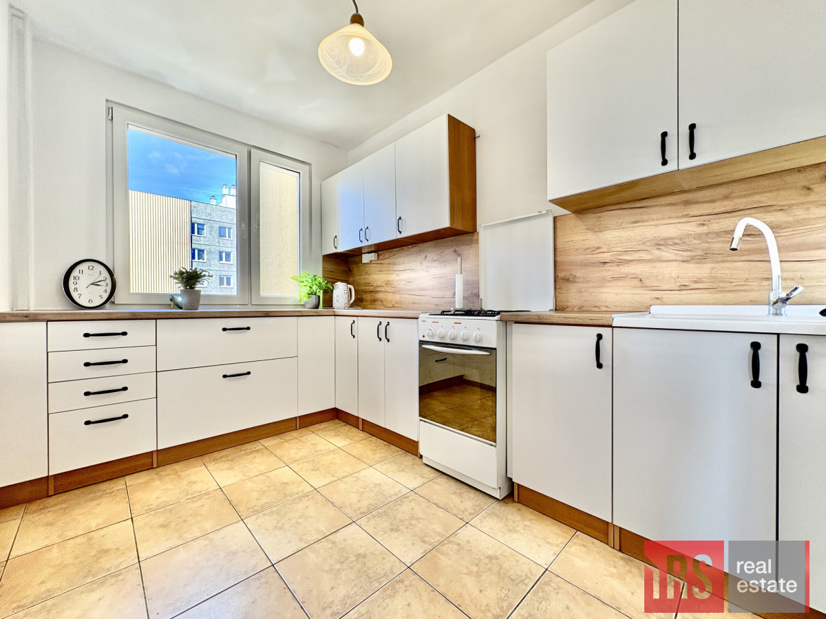 Atutem mieszkania jest niewątpliwie duża, widna i funkcjonalna kuchnia z meblami w zabudowie.