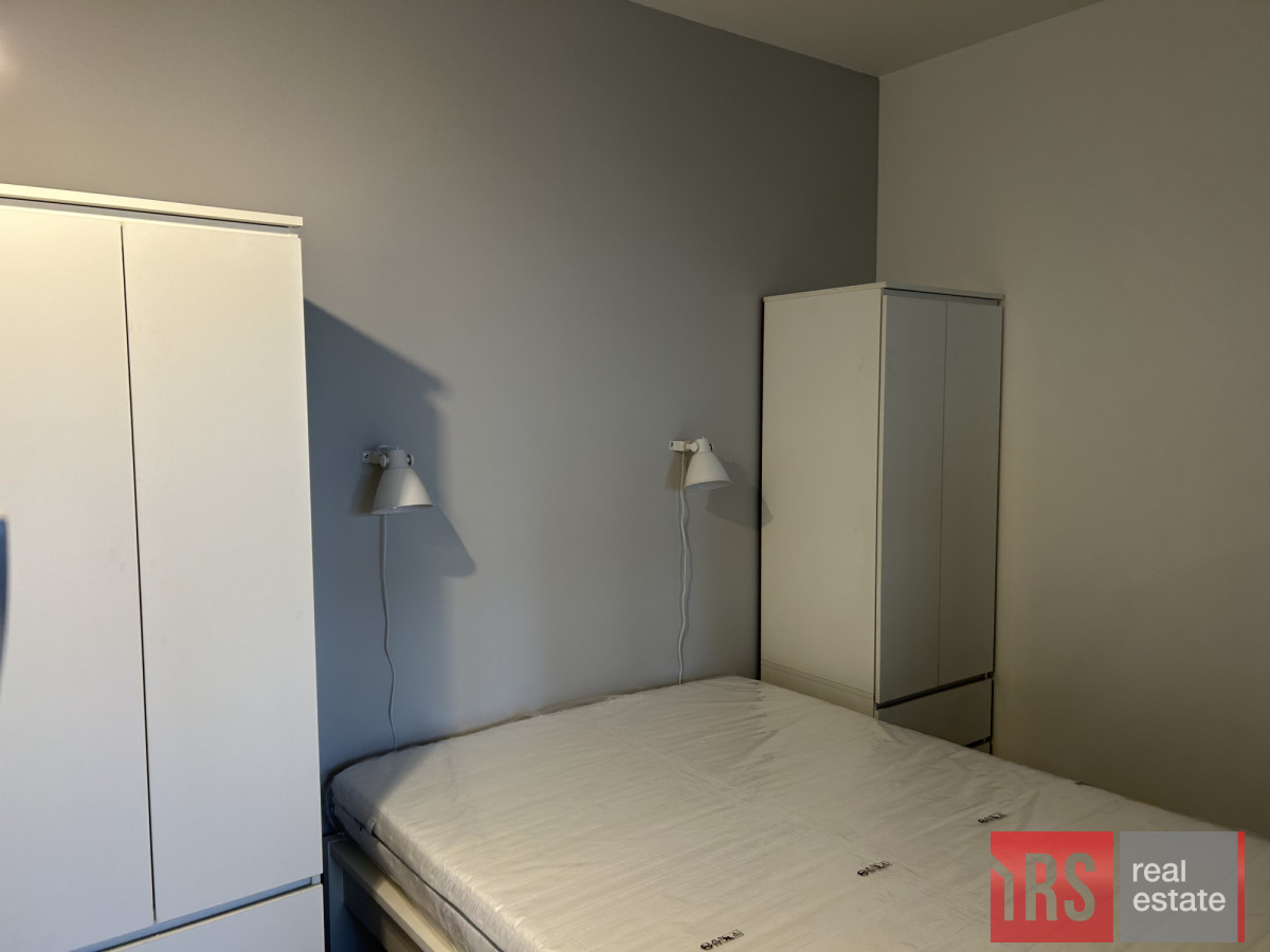 Mieszkanie po remoncie, składa się z pokoju z wyjściem na duży balkon, oraz wnęki sypialnianej z sypialnianym łóżkiem.