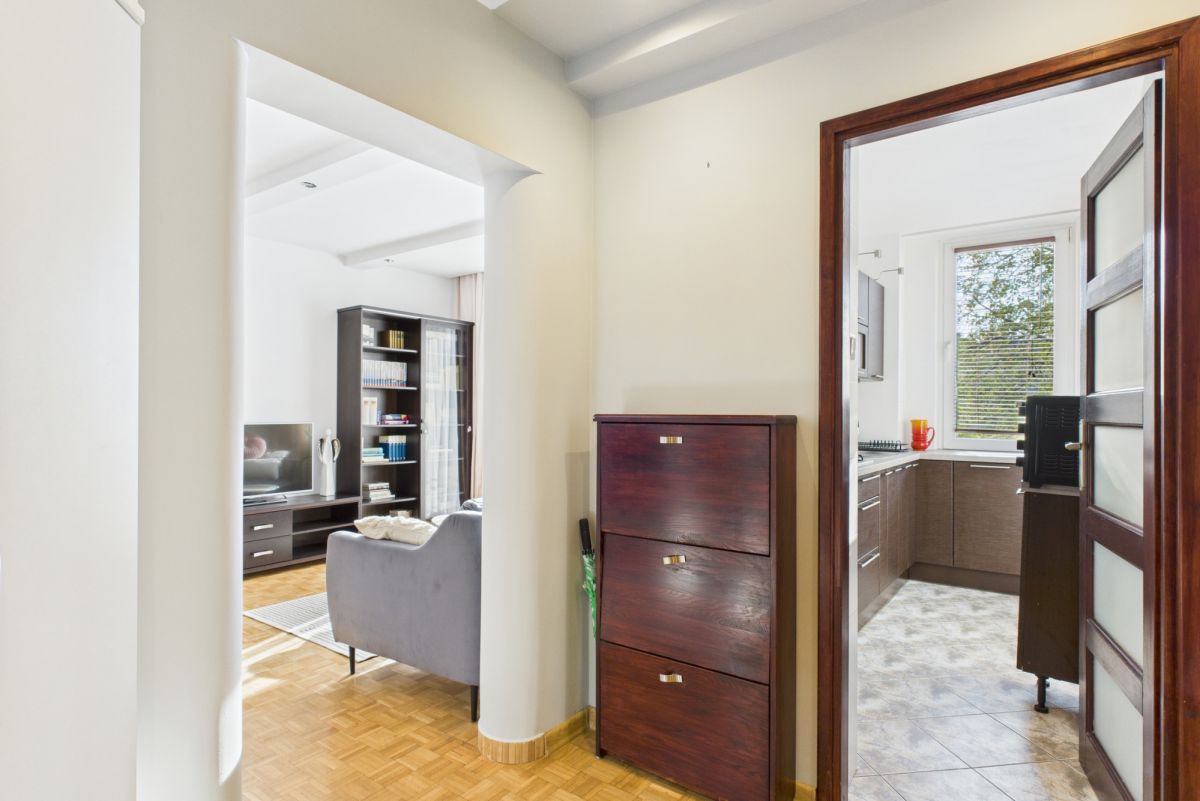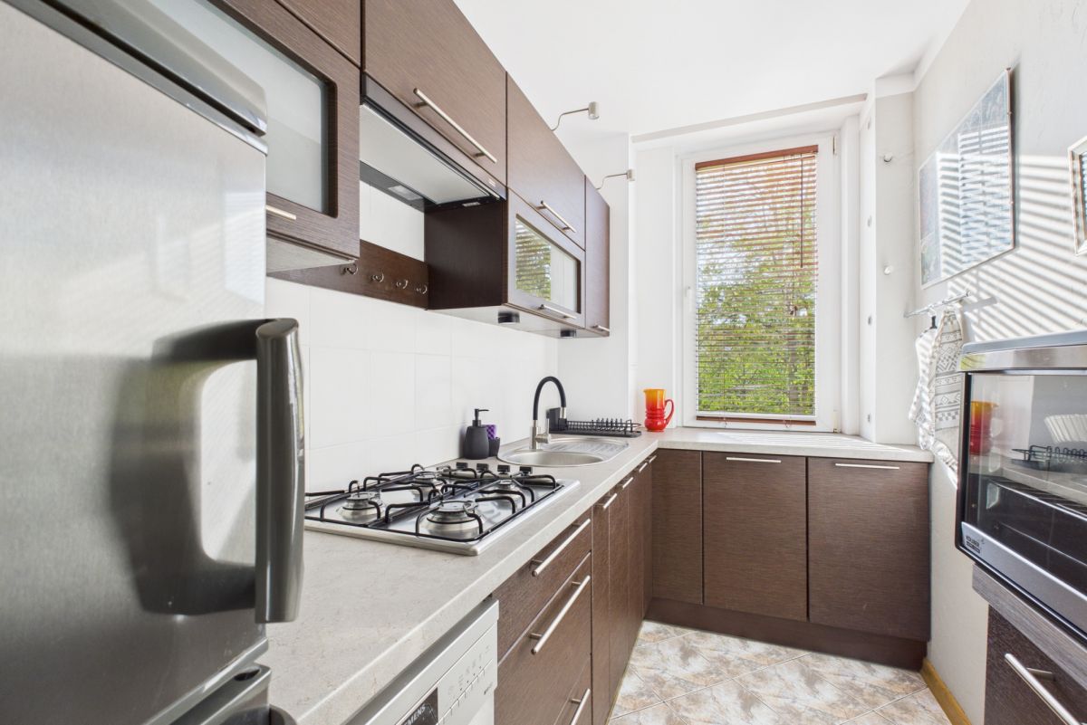 Oddzielna kuchnia i dwa niezależne, dobrze doświetlone pokoje.