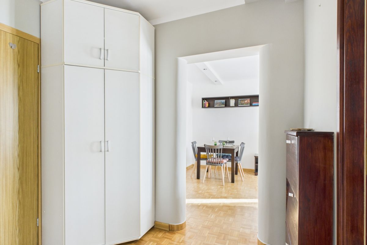 W przedpokoju szafa na odzież wierzchnią oraz osobna szafka na buty.