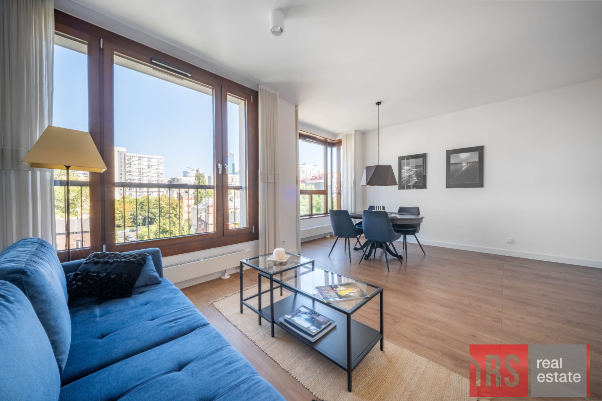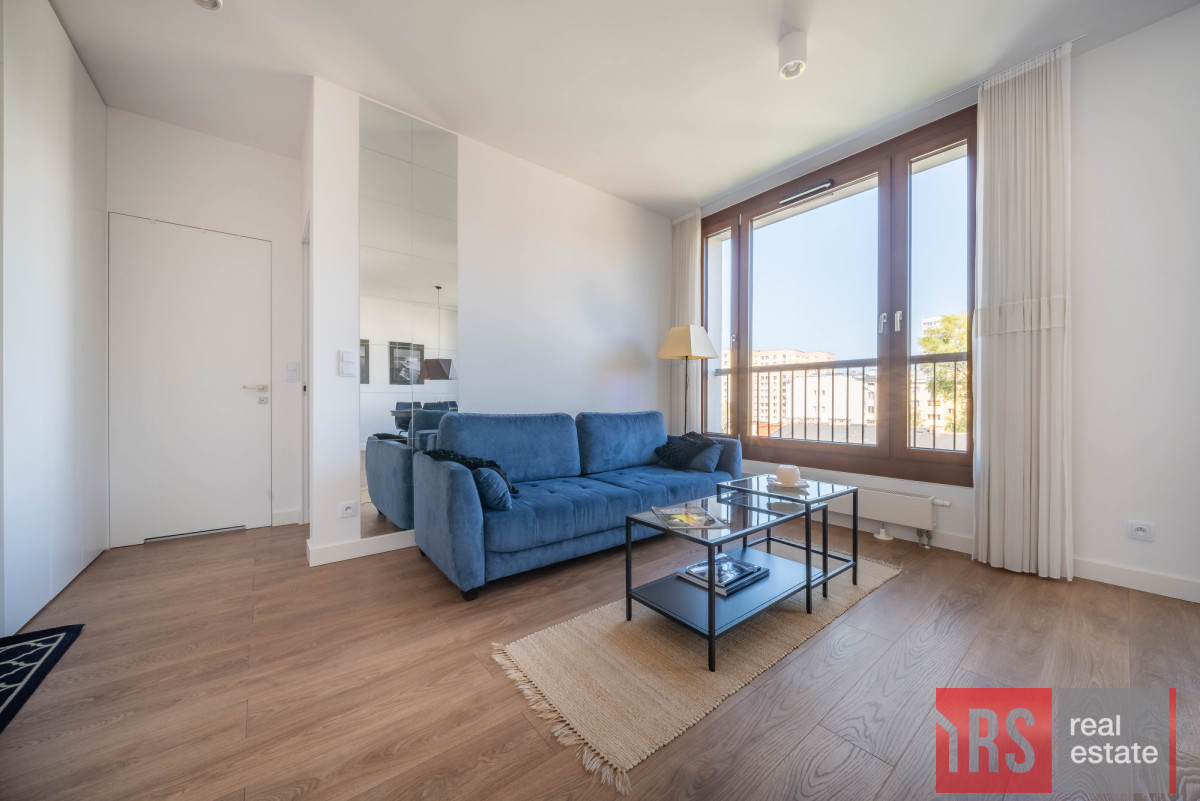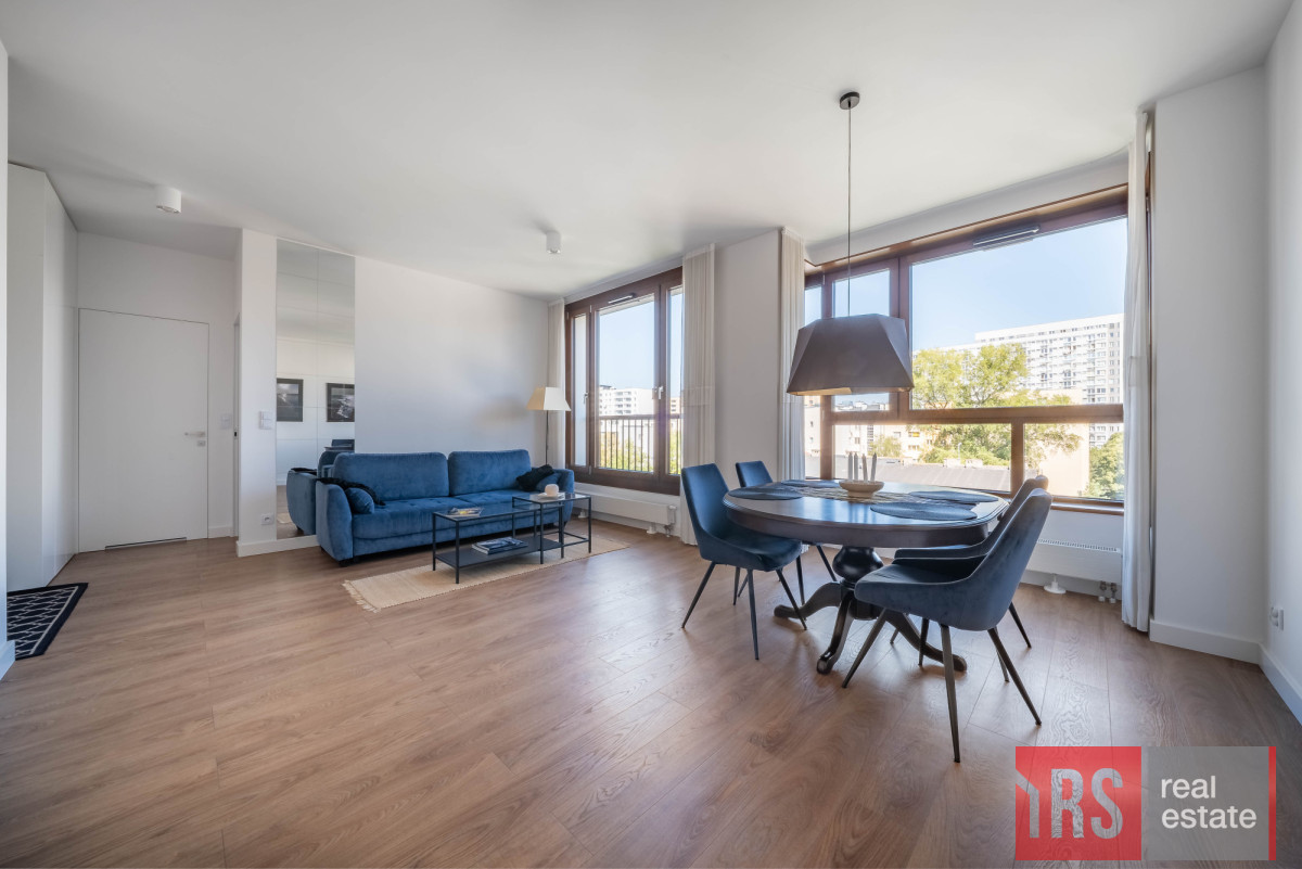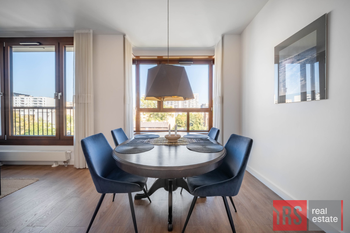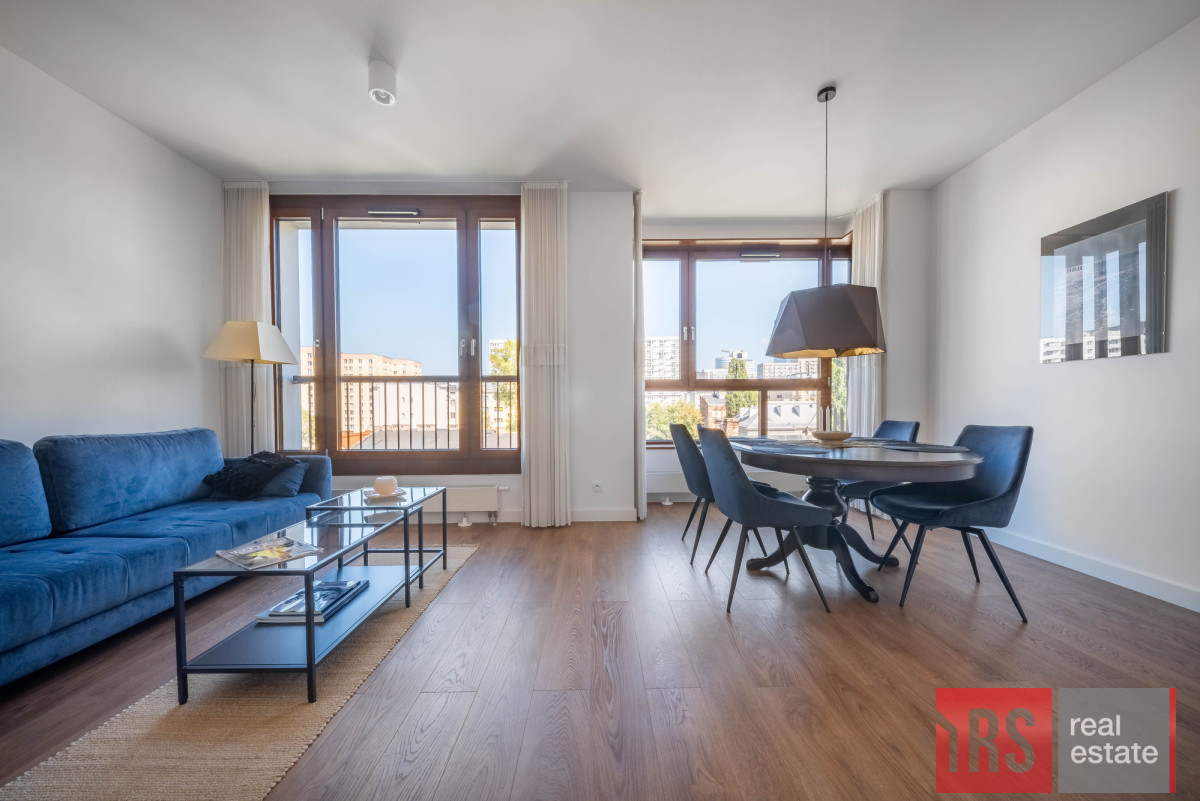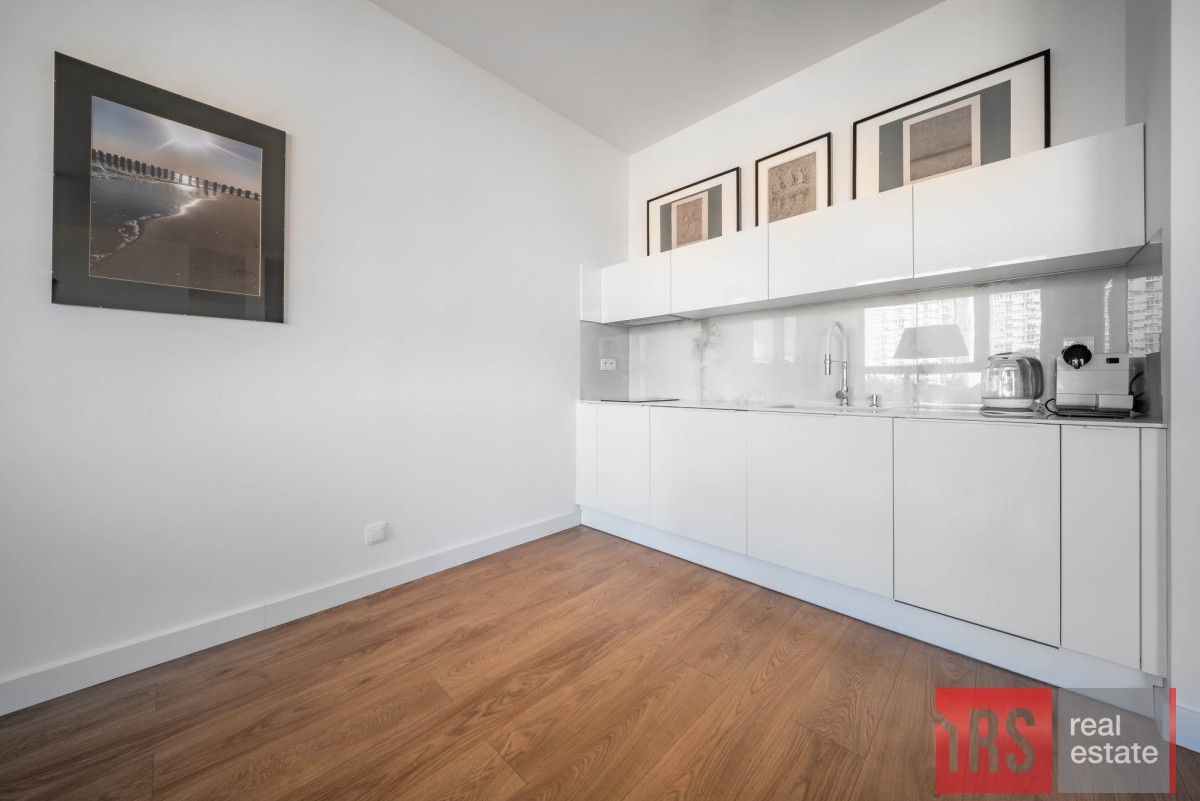 Lokal znajduje się na 5. piętrze nowoczesnego zadbanego i strzeżonego budynku z 2019 roku. Mieszkanie jest jasne i przestronne, doświetlone dużymi, wysokimi oknami co sprawia że przestrzeń wydaję się być jeszcze większa.
