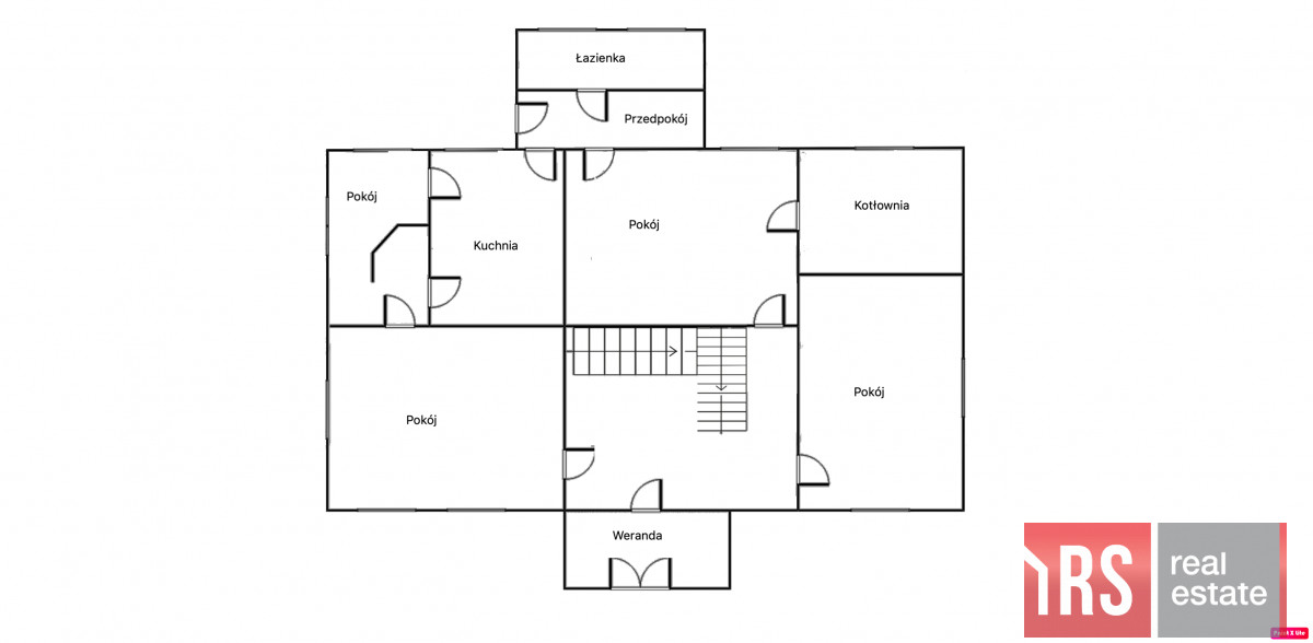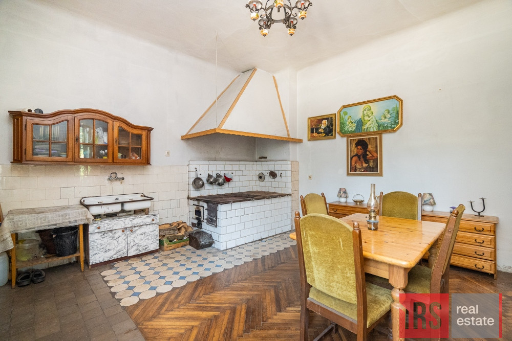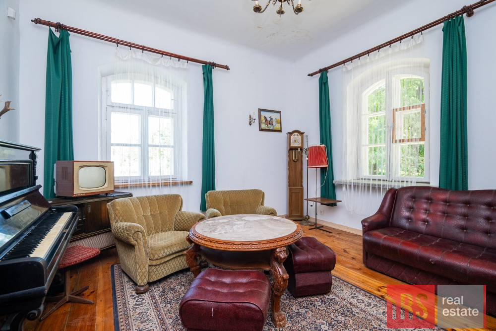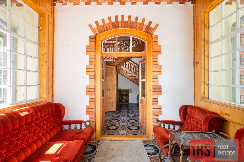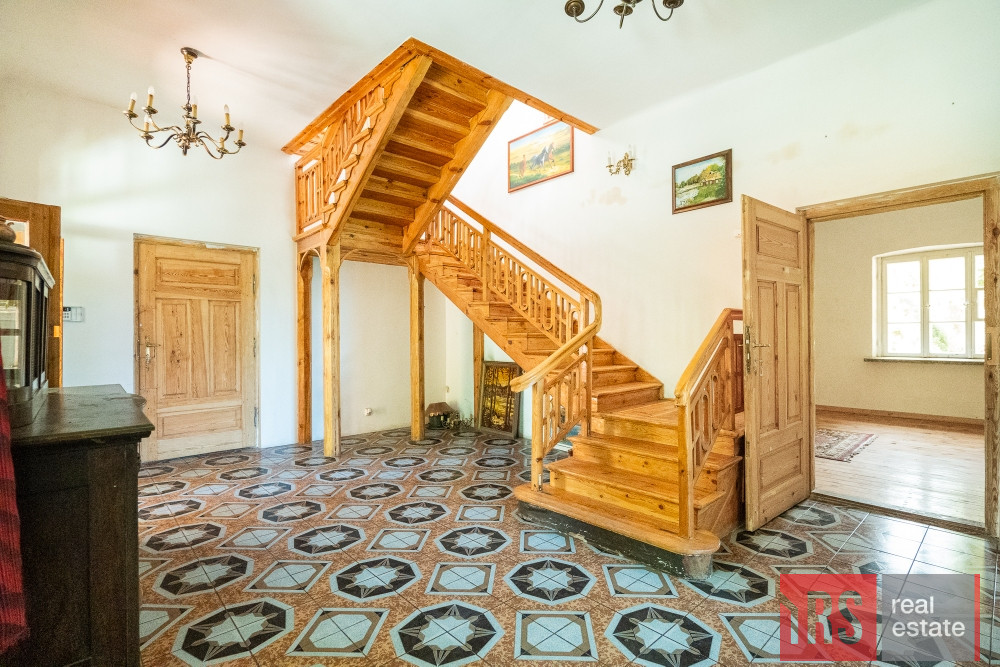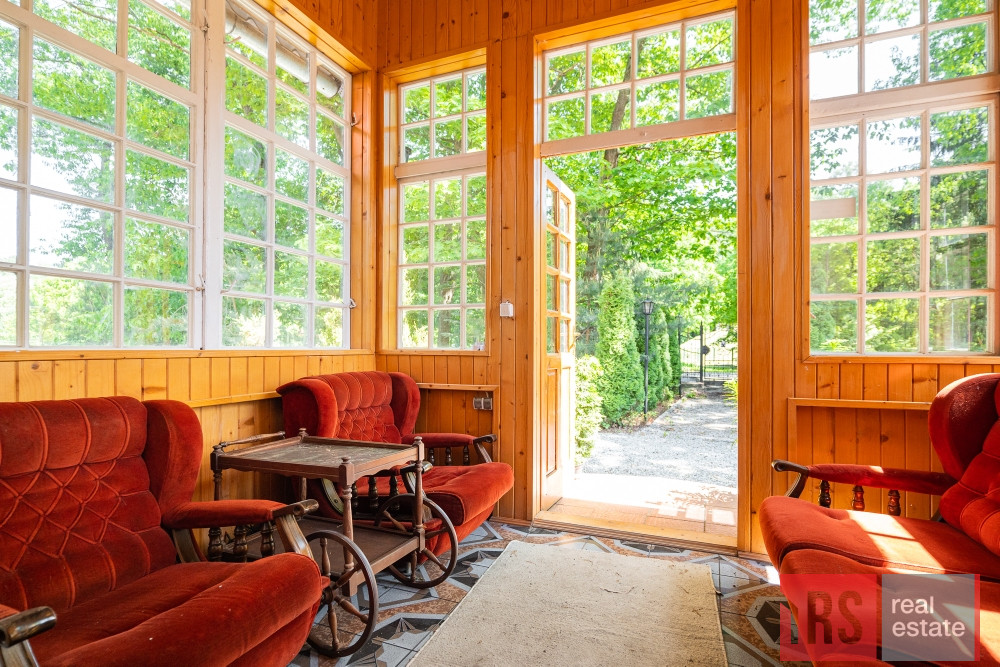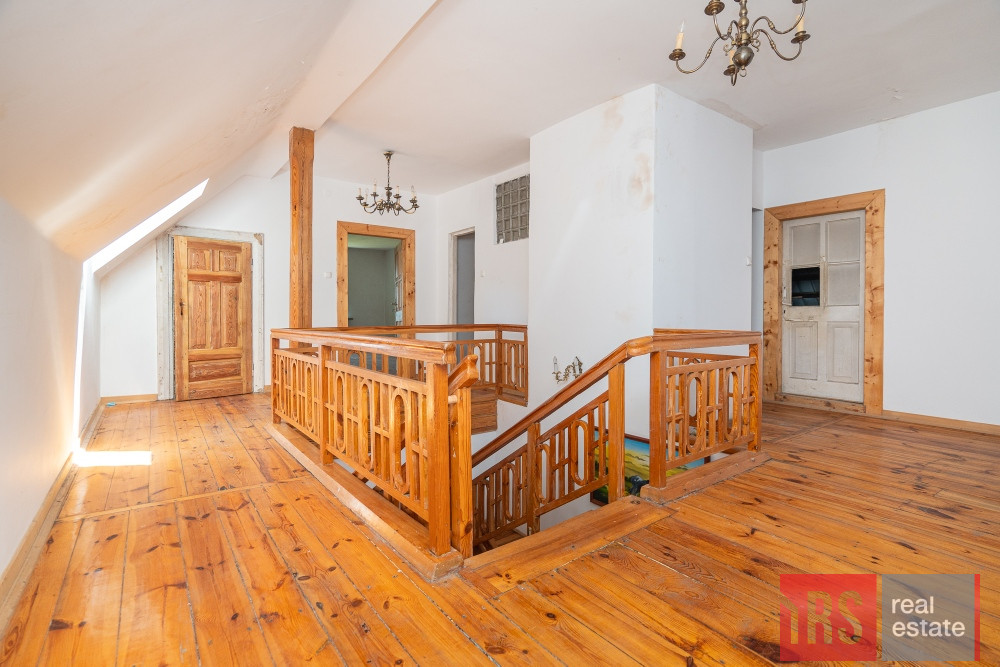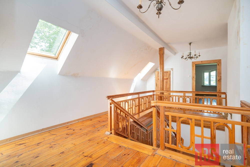 Na parterze - 4 pokoje ( 37 m2, 15 m2, 21 m2, 24 m2), kuchnia (25 m2) i łazienka (8,20 m2), kotłownia (10,50 m2) oraz weranda (5,50 m2). Wysokość pomieszczeń 3, 4 m. Piwnica.