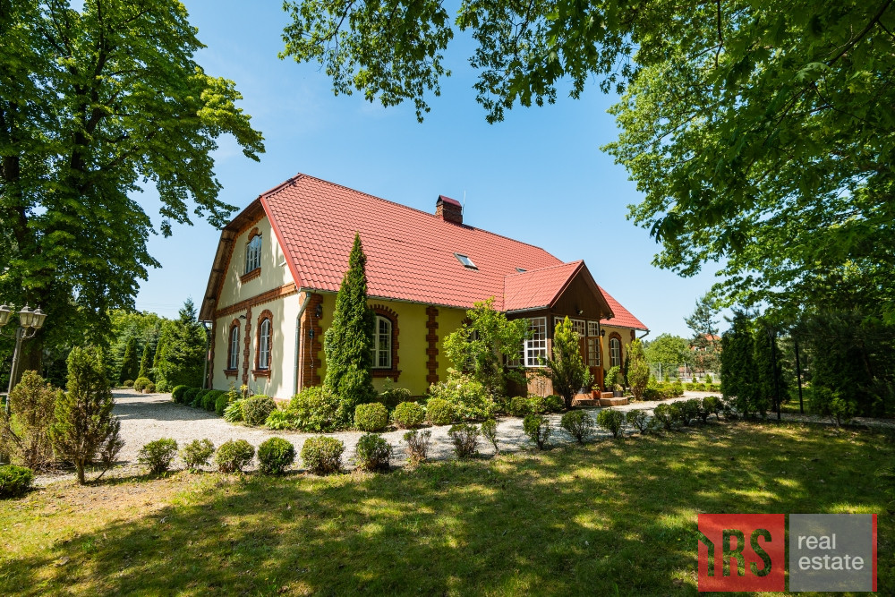 Budynek jednokondygnacyjny z poddaszem. Powierzchnia 318, 80 m2. Działka 0,4424 ha. Wymiary działki 63,50m na 70 m. Budynek z cegły czerwonej, dach - blacho dachówka, kanalizacja miejska, instalacje elektryczne miedziane, ogrzewanie z własnej kotłowni olejowej. Podłączony alarm.