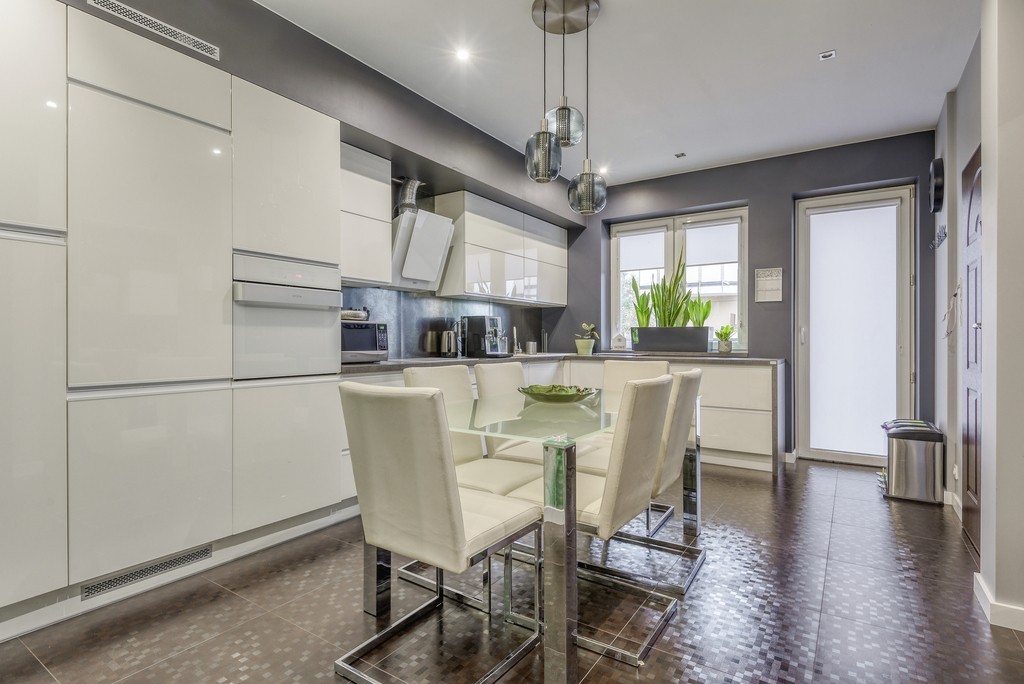 - Widna, w pełni funkcjonalna kuchnia z jadalnią oraz wyjściem na balkon (ok. 8 m²)
