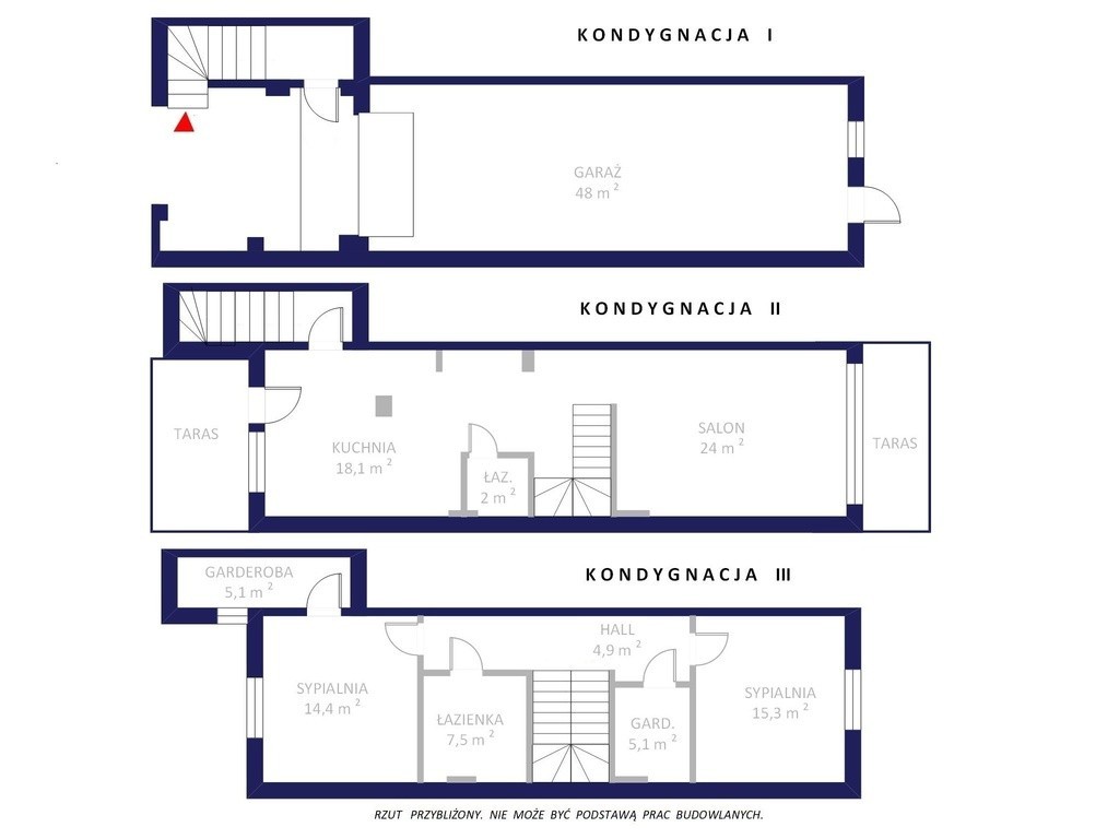 - Garaż trzystanowiskowy o powierzchni ok. 48 m²