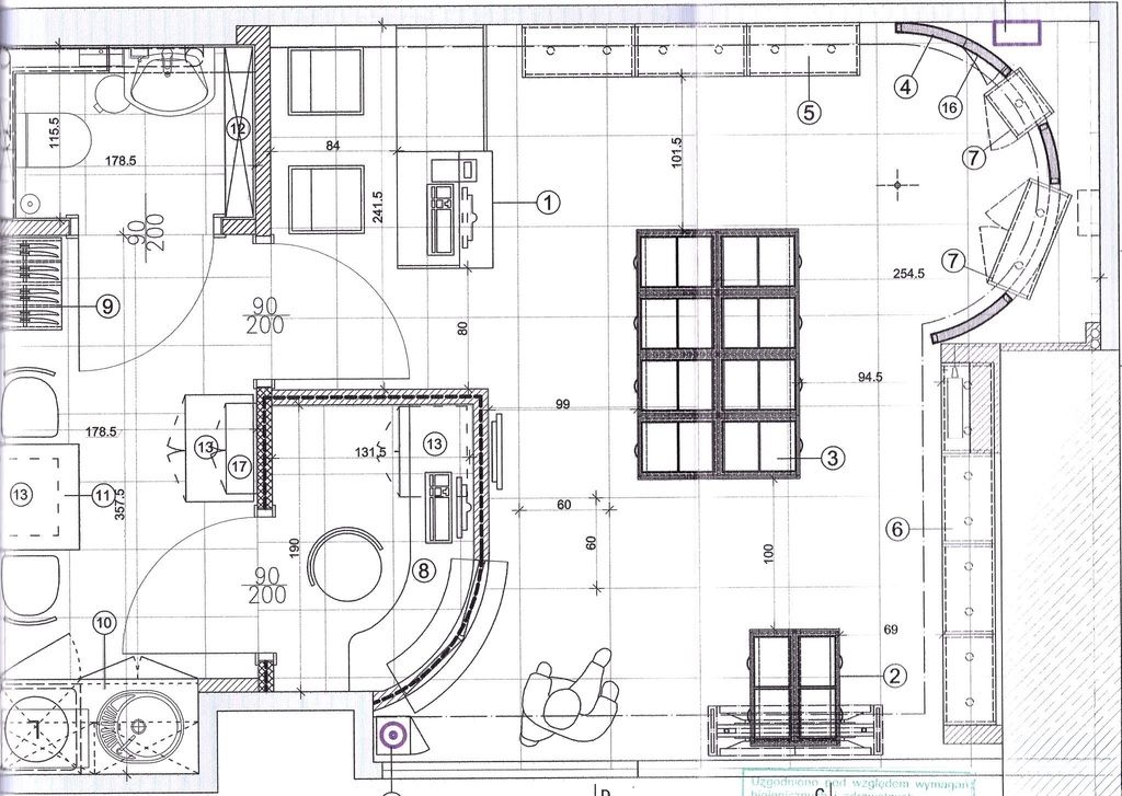 - sala sprzedaży (23.47m2) wyposażona w wysokiej klasy zabudowy i przeszkolone witryny na wymiar oraz wyspę,