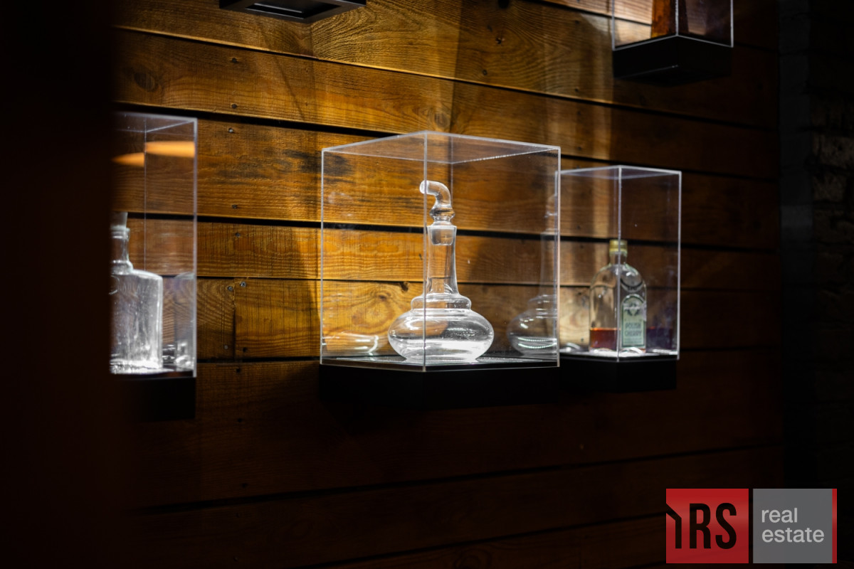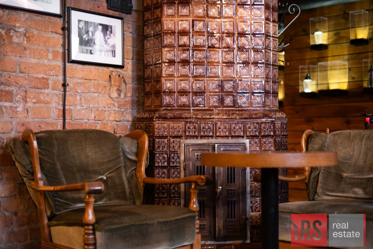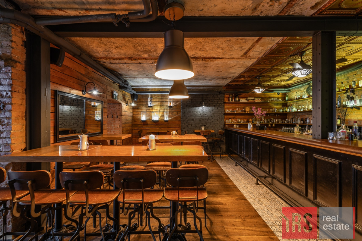 Elementy wystroju: Bar wykonany z drewna dębowego, dębowa podłoga, stoliki dębowe. Wszystko robione na zamówienie.