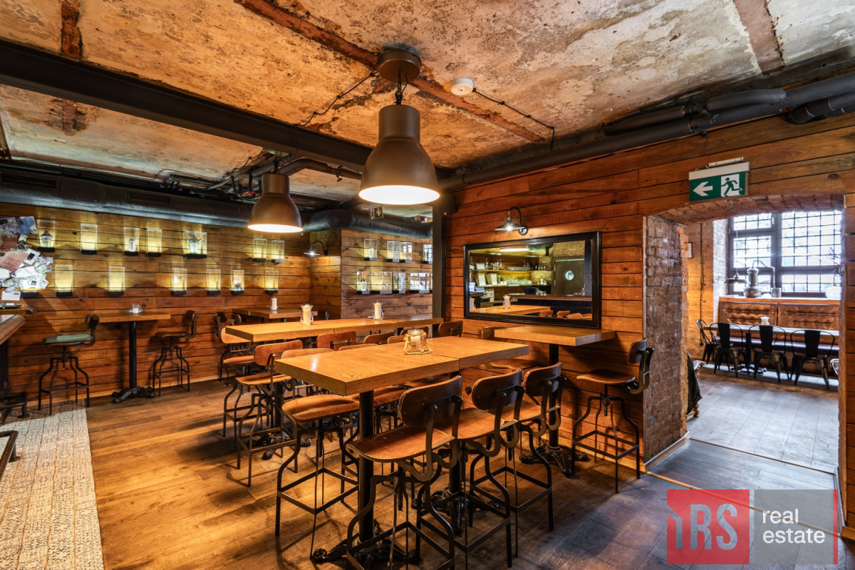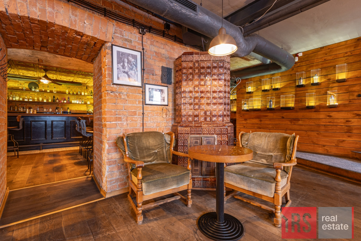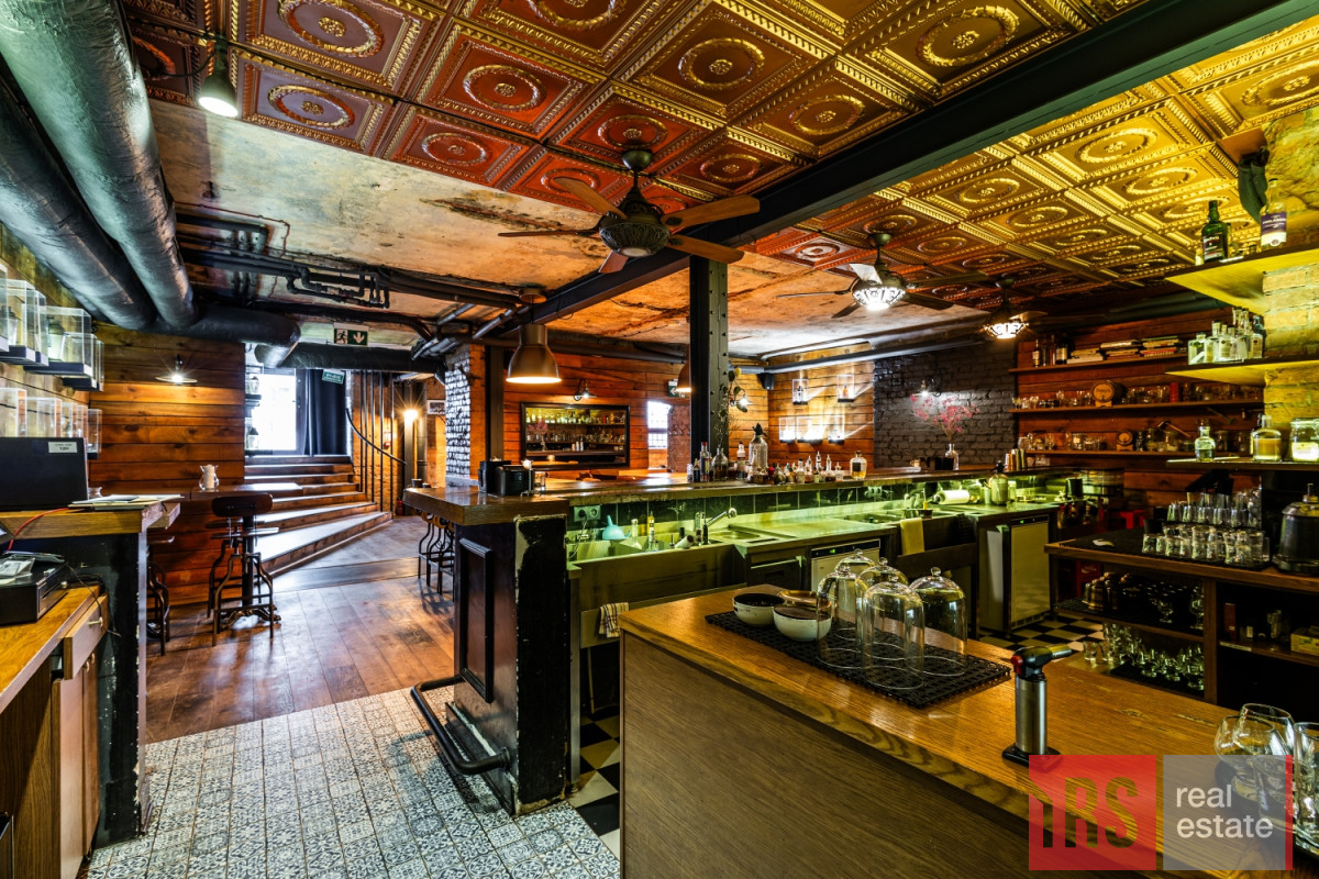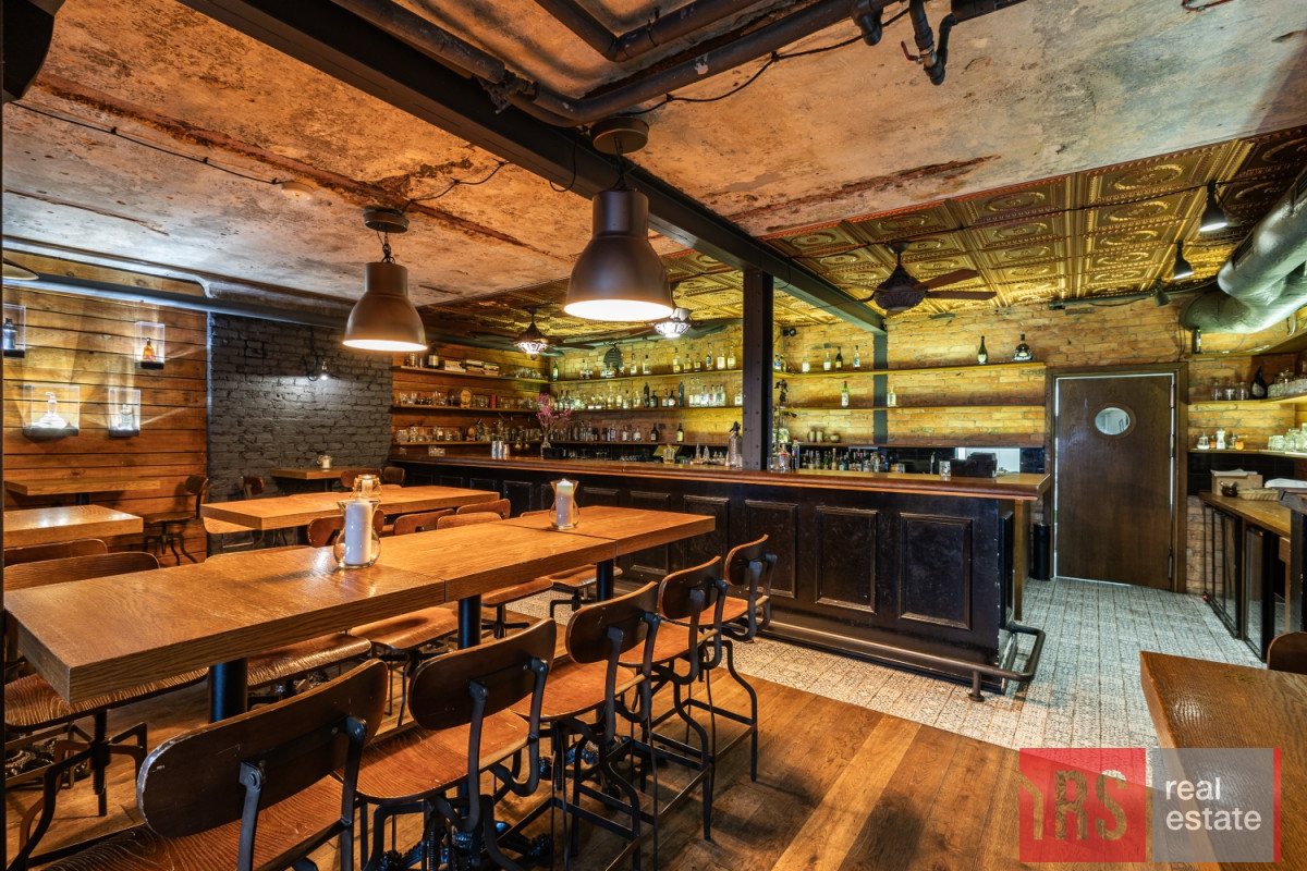 Elementy wystroju: Bar wykonany z drewna dębowego, dębowa podłoga, stoliki dębowe. Wszystko robione na zamówienie.
