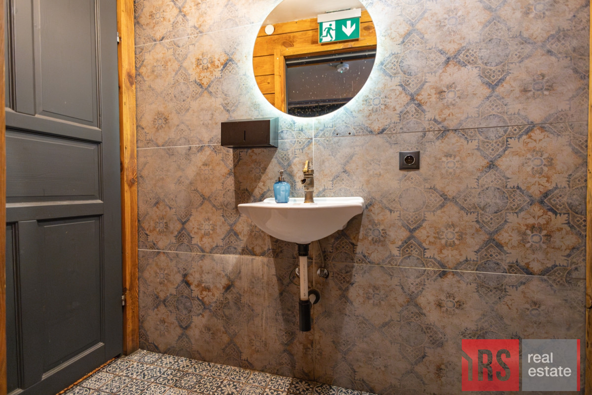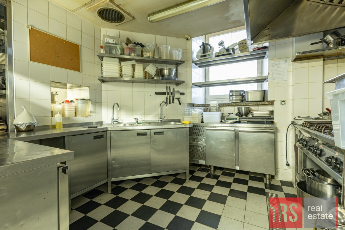 Zabudowa robocza kuchni oraz baru jest wykonana na zamówienie, pod wymiar, ze stali nierdzewnej. Na barze są to 3 sekcje barowe, z dostępem do bieżącej wody, przegrodami na lód i składniki, miejscem do krojenia, oraz śmietnikami na kółkach. Kuchnia jest w całości w zabudowie ze stali nierdzewnej.