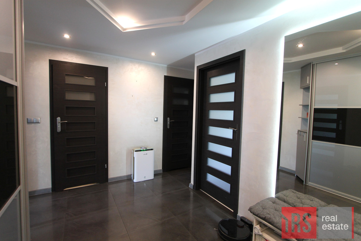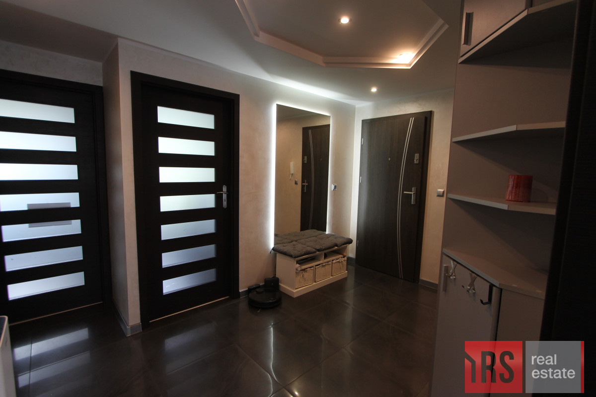 Kolejnym atutem jest duży i przestronny przedpokój, w którym duża zabudowana szafa, pełni rolę garderoby oraz spiżarni.