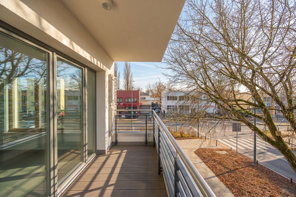 Mieszkanie narożne. Okna drewniane z dodatkowym wyciszeniem, skierowane na południe i zachód. Drzwi wejściowe, antywłamaniowe Gerda. Wideodomofon z panelem dotykowym Hikvision z funkcją rozpoznawania twarzy oraz możliwością podglądu kamer na osiedlu. Balkon wyłożony deską kompozytową