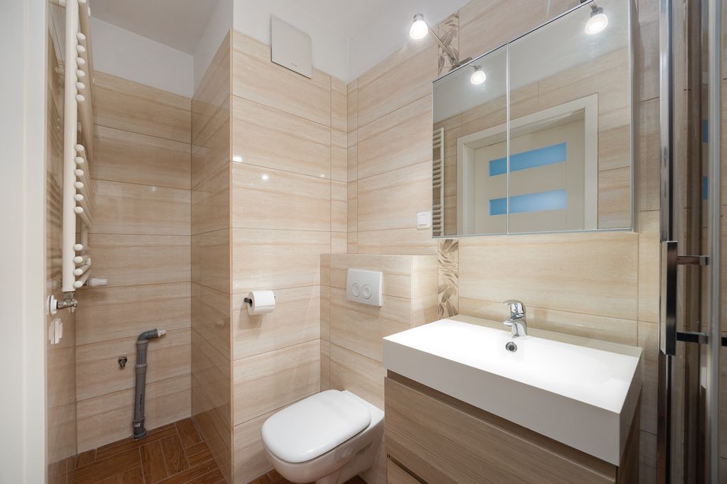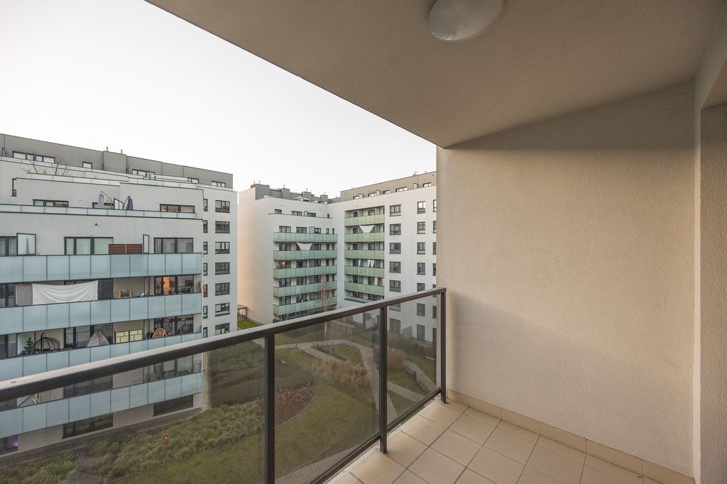 Mieszkanie jest w bardzo dobrym stanie technicznym, świeżo odświeżone i odmalowane. Wnętrze wykończone jest w ponadczasowym standardzie, z panelami oraz gresem na podłogach. W łazience znajduje się prysznic. Nowoczesne drewniane okna skierowane są na zachód, dzięki czemu mieszkanie jest dobrze doświetlone i pozostaje ciche, ponieważ wychodzi na wewnętrzne patio.