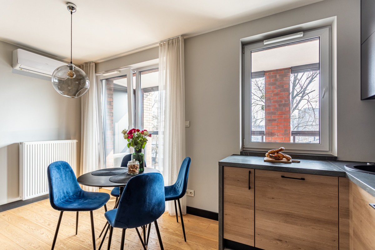 Elegancki apartament w nowoczesnej inwestycji na Pradze Północ, tuż obok stacji metra Szwedzka. Mieszkanie to jest idealnym wyborem dla osób poszukujących komfortu oraz doskonałego połączenia z centrum miasta. Dodatkowym atutem apartamentu jest klimatyzacja.