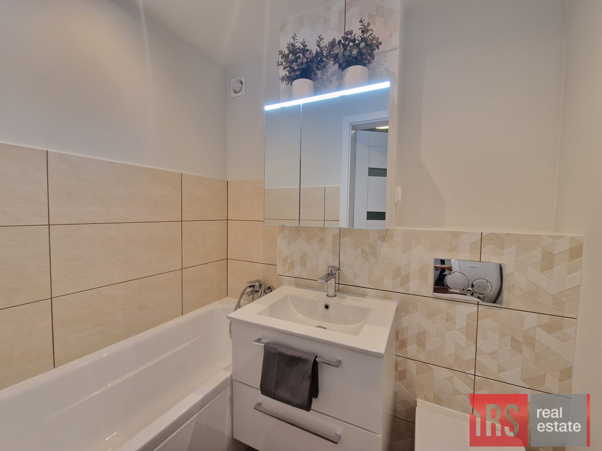 Kuchnia wyposażona w zmywarkę i płytę indukcyjną. Na nowo zagospodarowana łazienka. W przedpokoju duża szafa z przygotowanym miejscem na podłączenie pralki. Wymienione drzwi wejściowe.