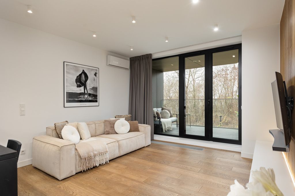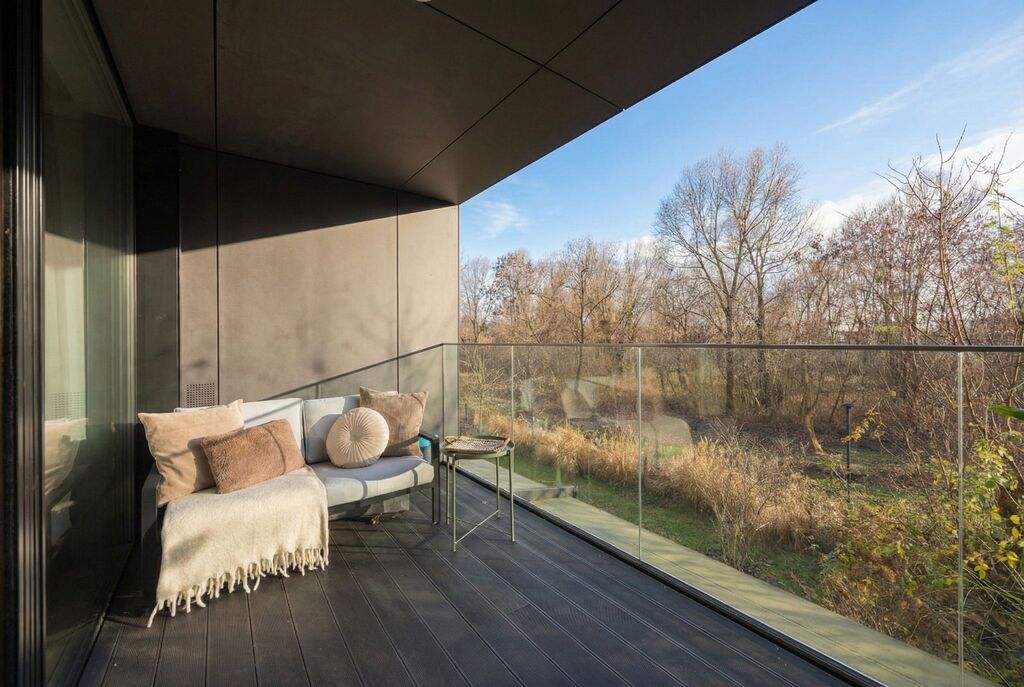 Aluminiowe okna, skierowane na zachód, zapewniają bardzo dobre doświetlenie wnętrz oraz widok na tereny zielone i Staw Krosno, gwarantując ciszę i prywatność. Duża, zadaszona loggia stanowi idealne miejsce do wypoczynku i aranżacji strefy relaksu.