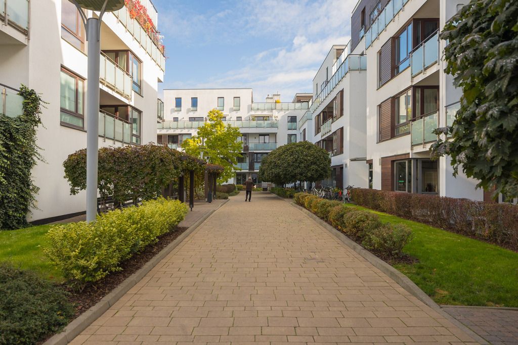 The apartment is located in the very heart of Miasteczko Wilanów — one of Warsaw’s most desirable residential areas.