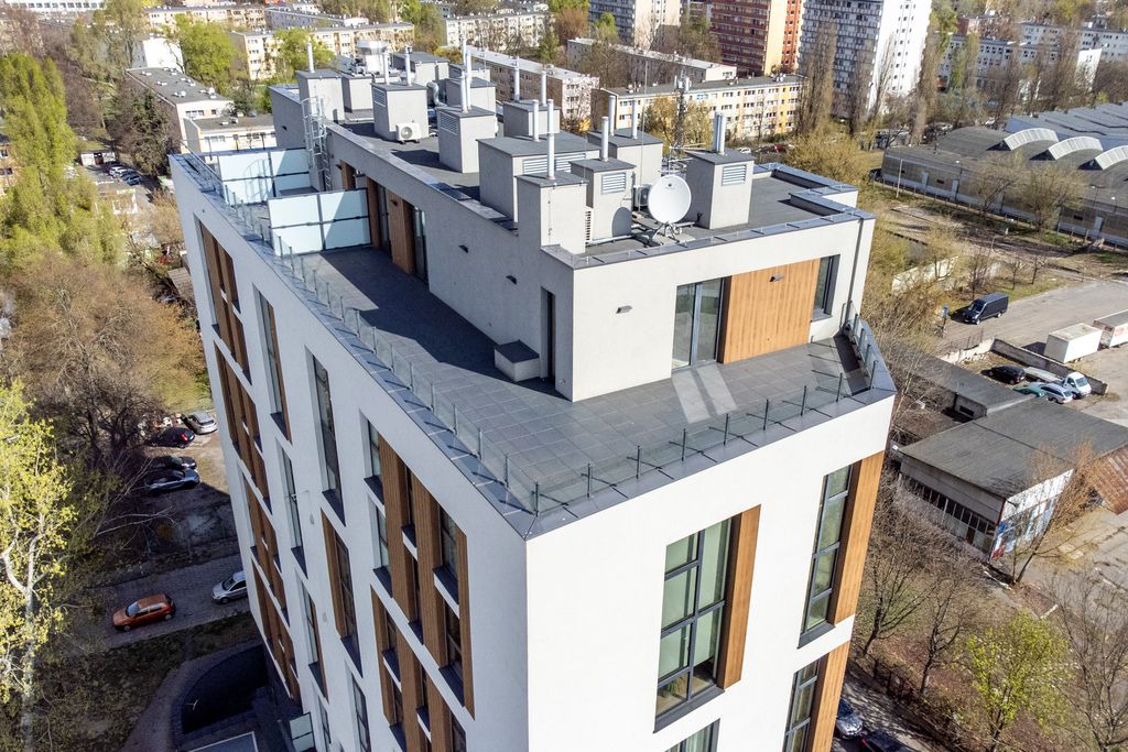 Dodatkowo dla wszystkich mieszkańców dostępny urządzony taras na dachu budynku, z którego rozpościera się spektakularny widok na panoramę centrum Warszawy.