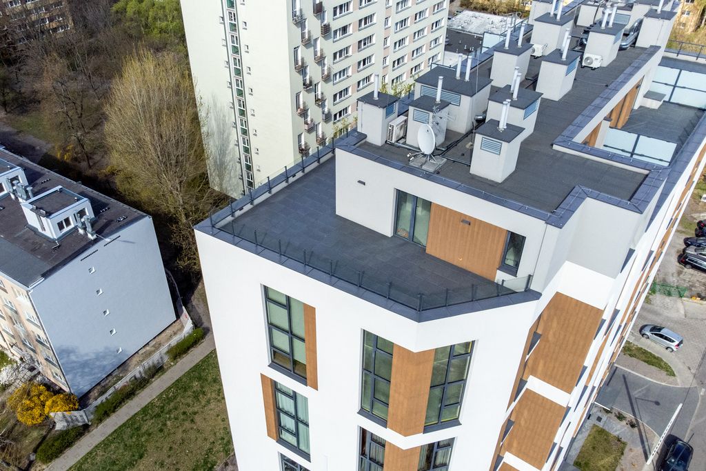 Additionally, all residents have access to a furnished terrace on the roof of the building, from which there is a spectacular view of the panorama of the center of Warsaw.