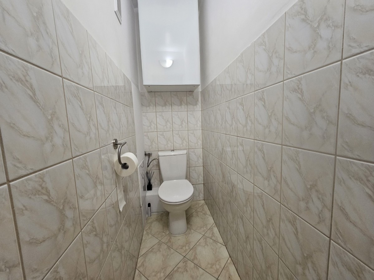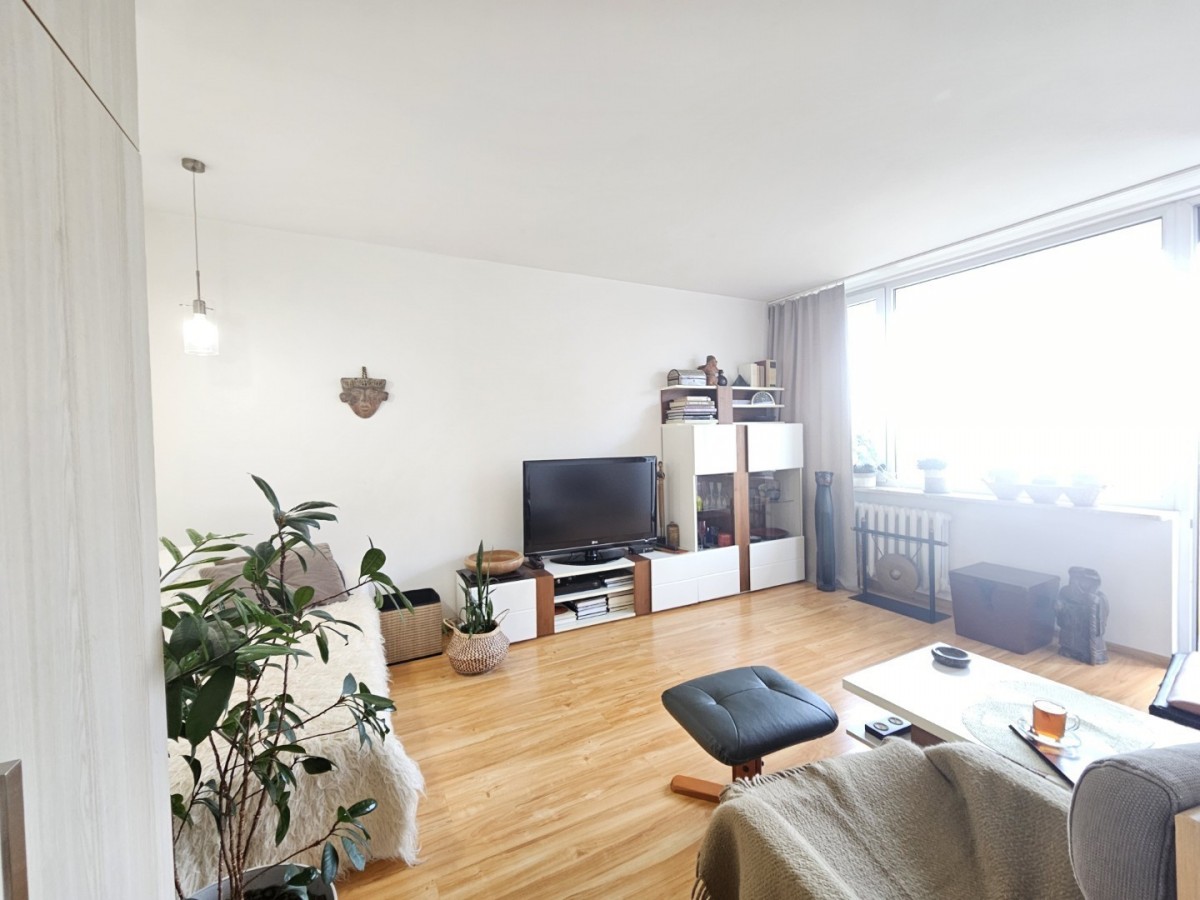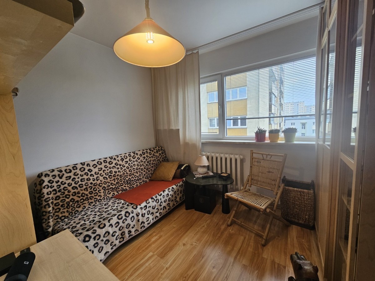 Lokal o bardzo funkcjonalnym układzie znajduje się na 4. piętrze w 10-piętrowym budynku z 1973 roku.