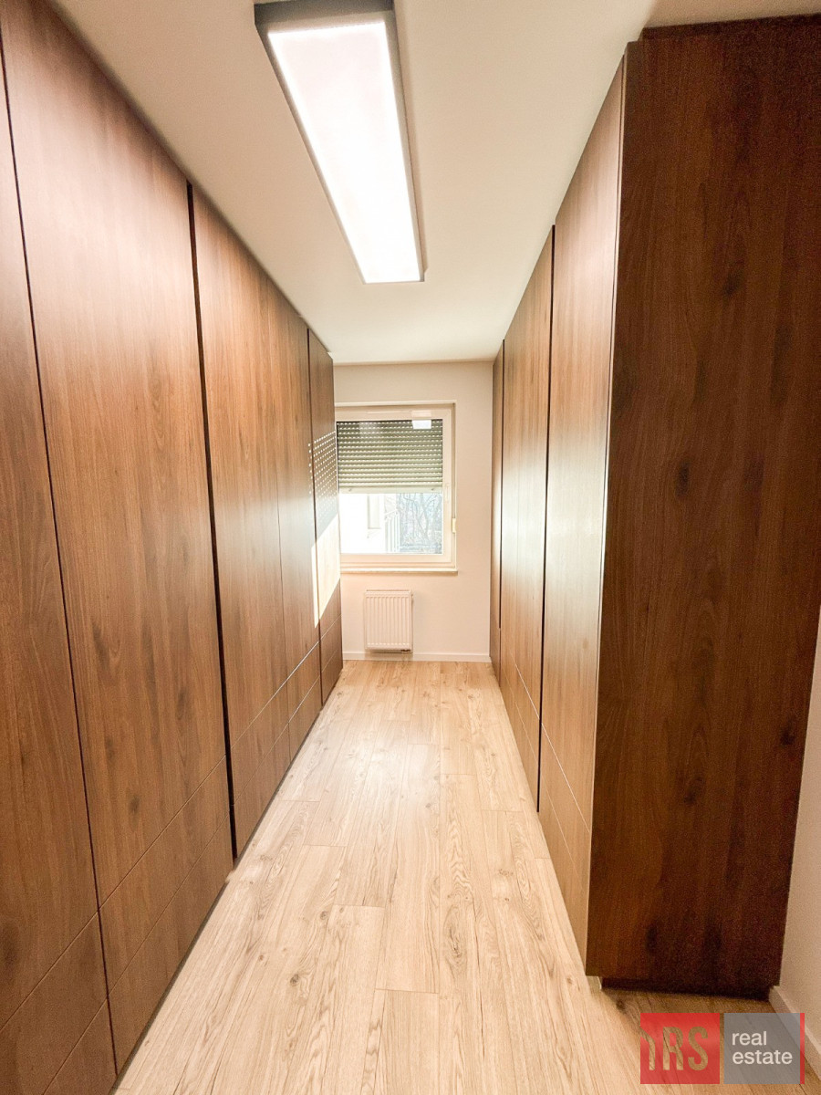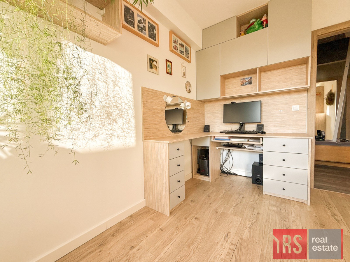 Mieszkanie pierwotnie 4-pokojowe - jeden z pokoi został zaaranżowany jako praktyczna garderoba w zabudowie, co znacząco podnosi komfort codziennego użytkowania.