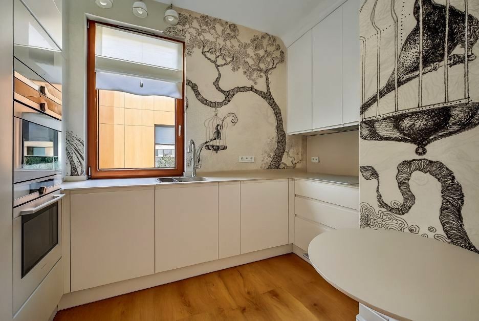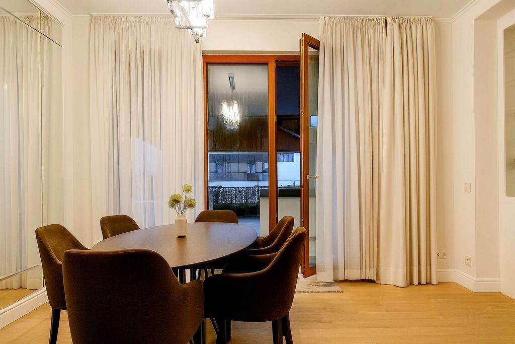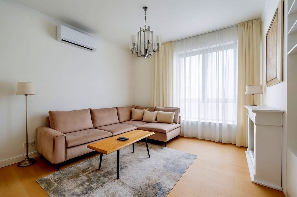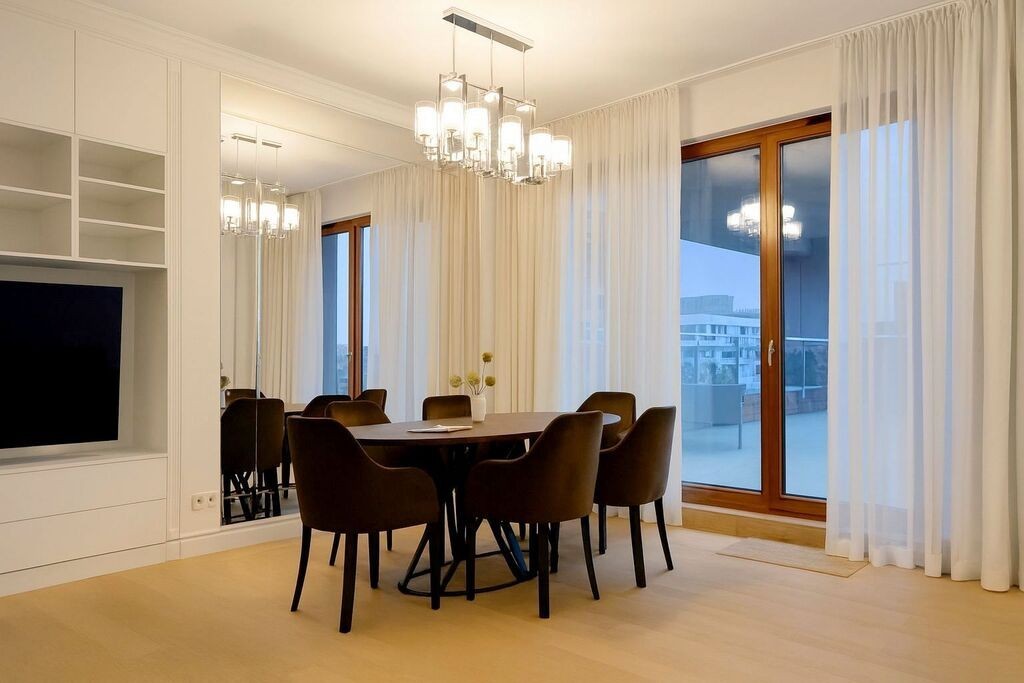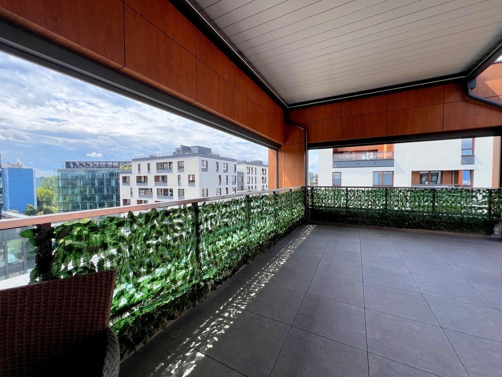 The apartment is located in a dynamic part of the city near Galeria Mokotów and the Wilanowska metro station.