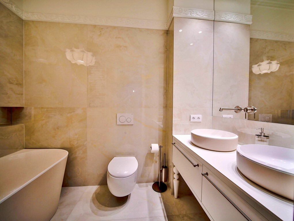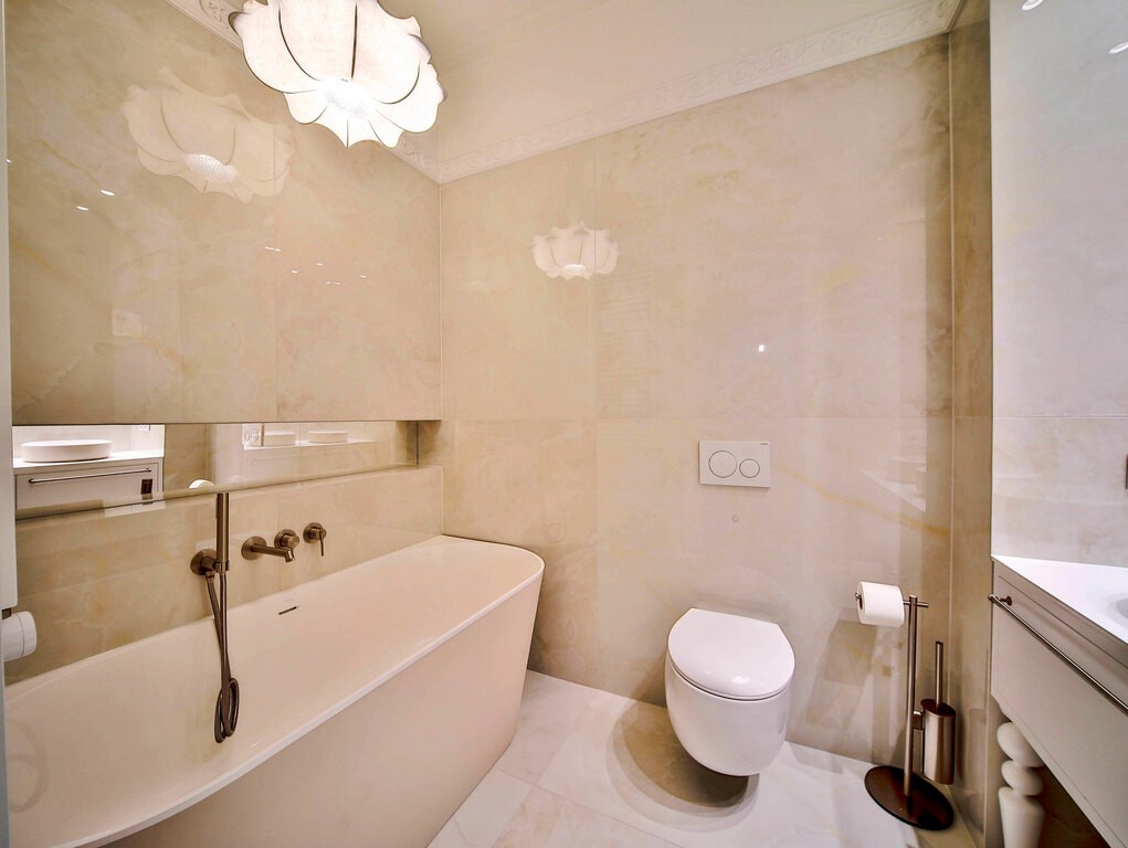 - 2 bathrooms (one with a shower, toilet, washbasin, the other with a large bathtub, 2 washbasins)