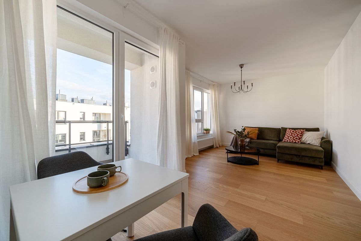 Mieszkanie usytuowany na 6. piętrze, w budynku z 2023 r., w pełni umeblowane, składa się z:
